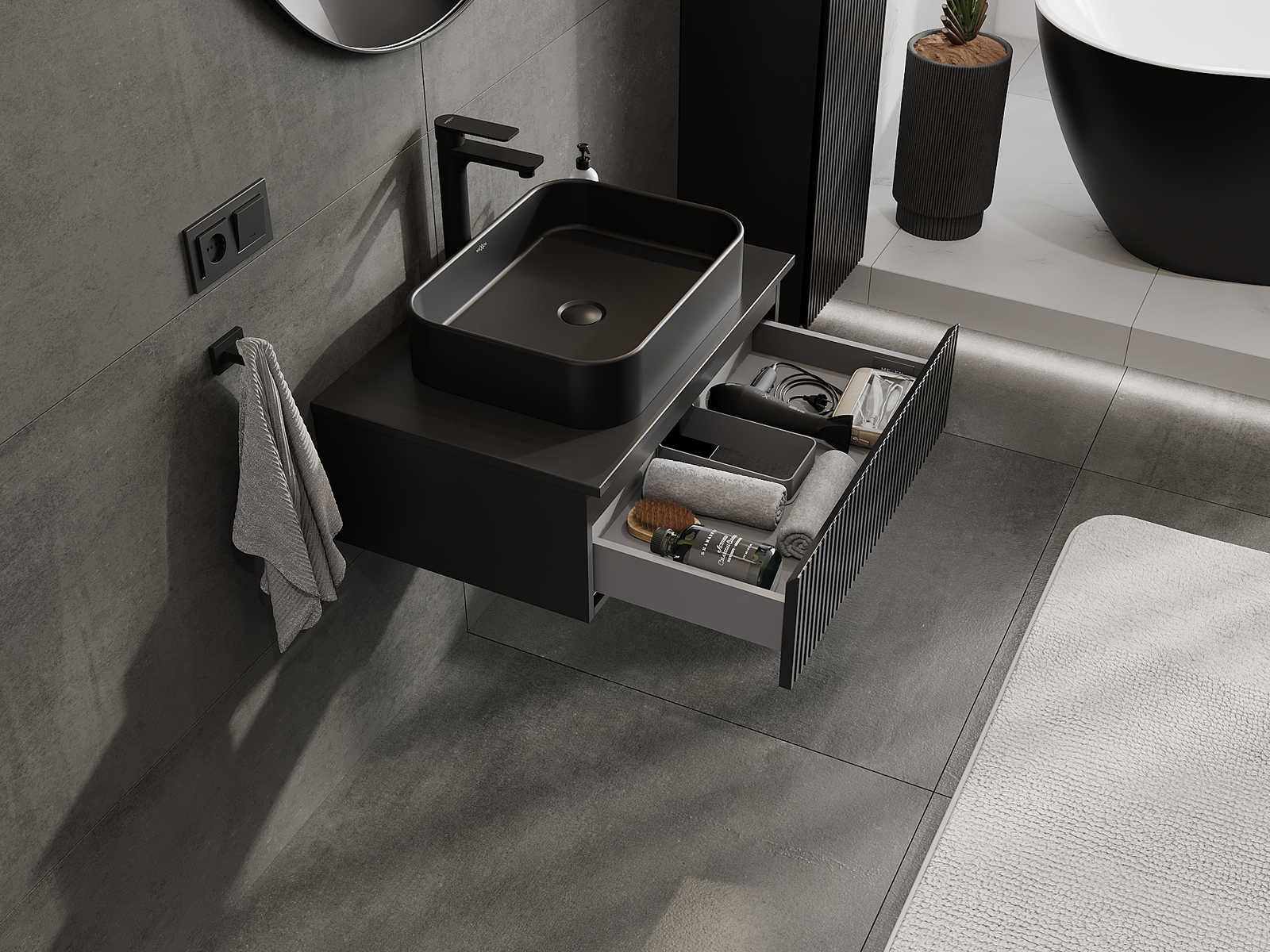 Mexen Rivel kúpeľňová skrinka pod umývadlo 70 cm, 1 zásuvka, ryhovaná, grafit mat - 91A20-07023-1-BF71