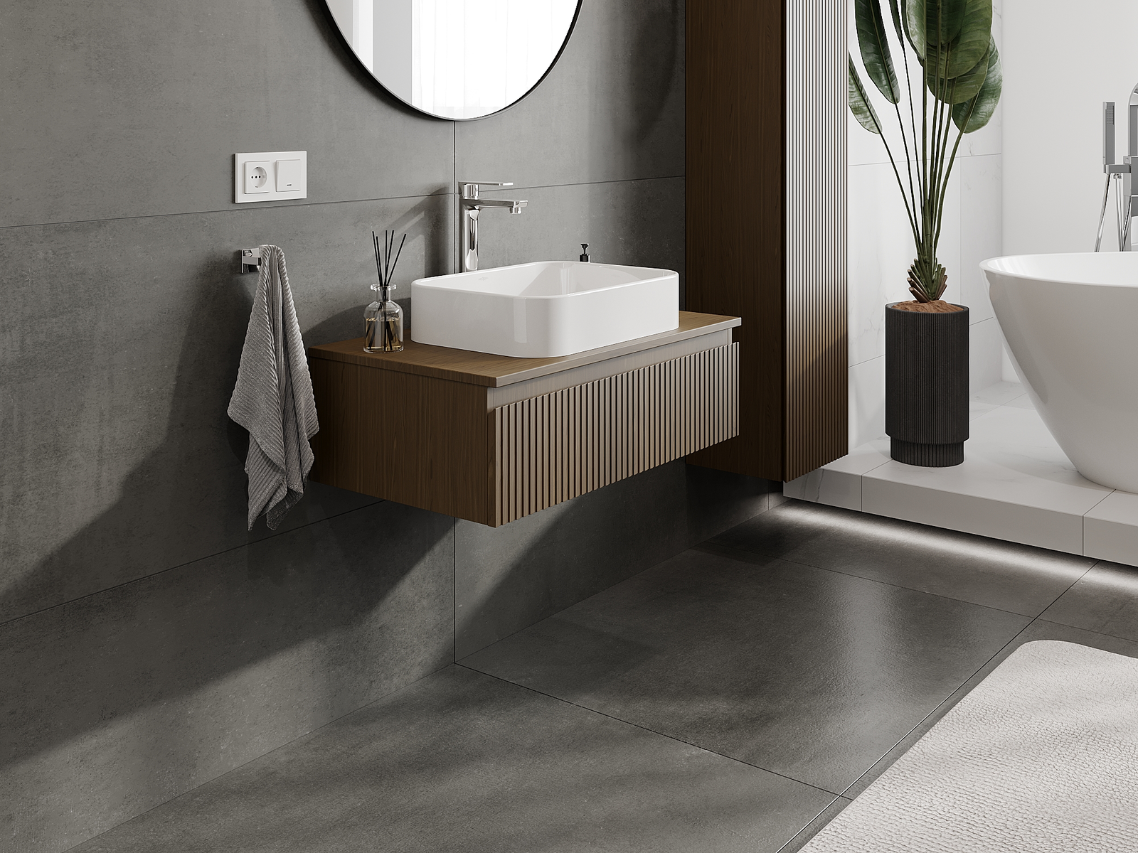 Vďaka pevným materiálom, precíznemu prevedeniu a moderným technologickým riešeniam, produkt poskytuje pohodlie používania, odolnosť voči vlhkosti a zmenám teploty, ako aj elegantný vzhľad, ktorý sa hodí k rôznym štýlom kúpeľní.