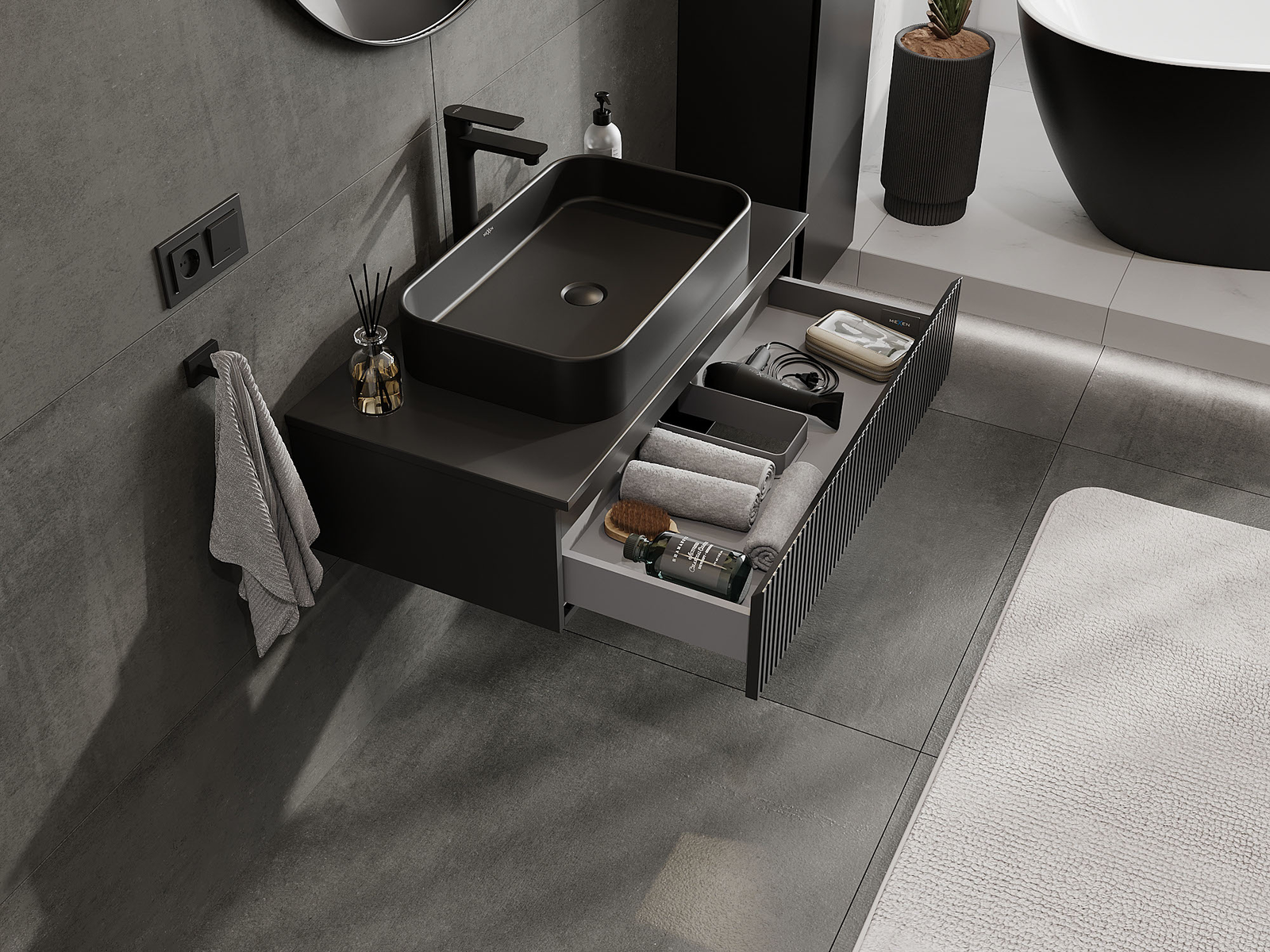 Mexen Rivel kúpeľňová skrinka pod umývadlo 90 cm, 1 zásuvka, ryhovaná, čierna mat - 91A20-09023-1-BF71