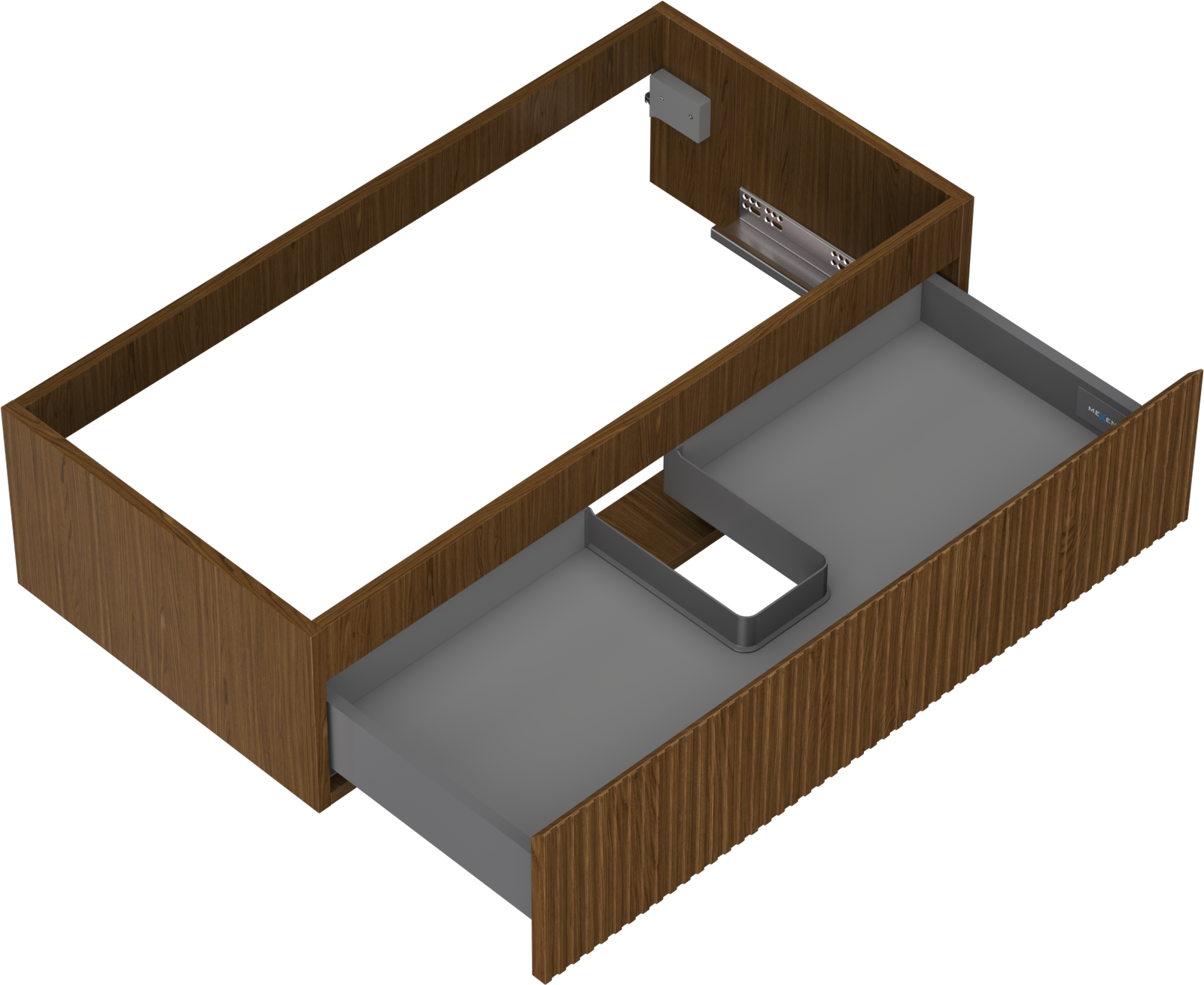 Výrez v zásuvke je navrhnutý tak, aby pojal sifón, ktorý je nevyhnutný v umývadlových inštaláciách. Vďaka tomu môže byť nábytok namontovaný plne funkčne, bez nutnosti vzdávať sa priestoru v zásuvke v prospech inštalácie.