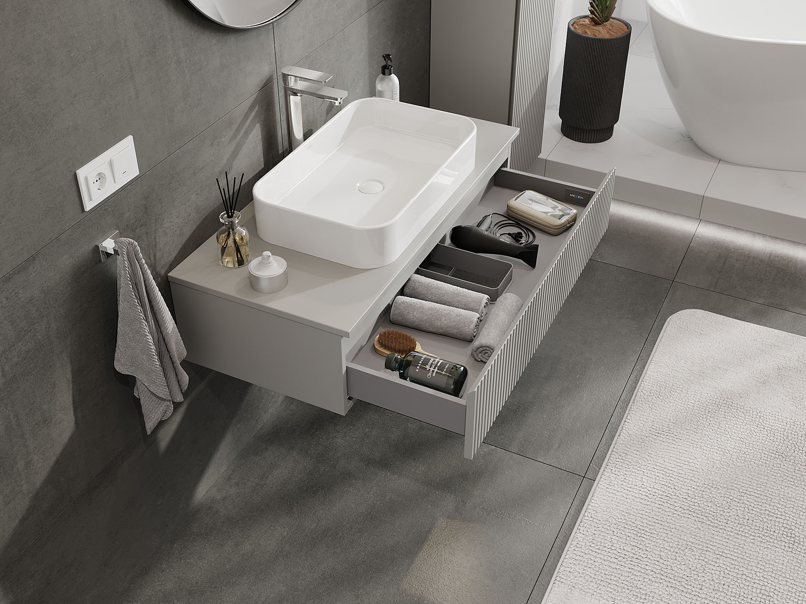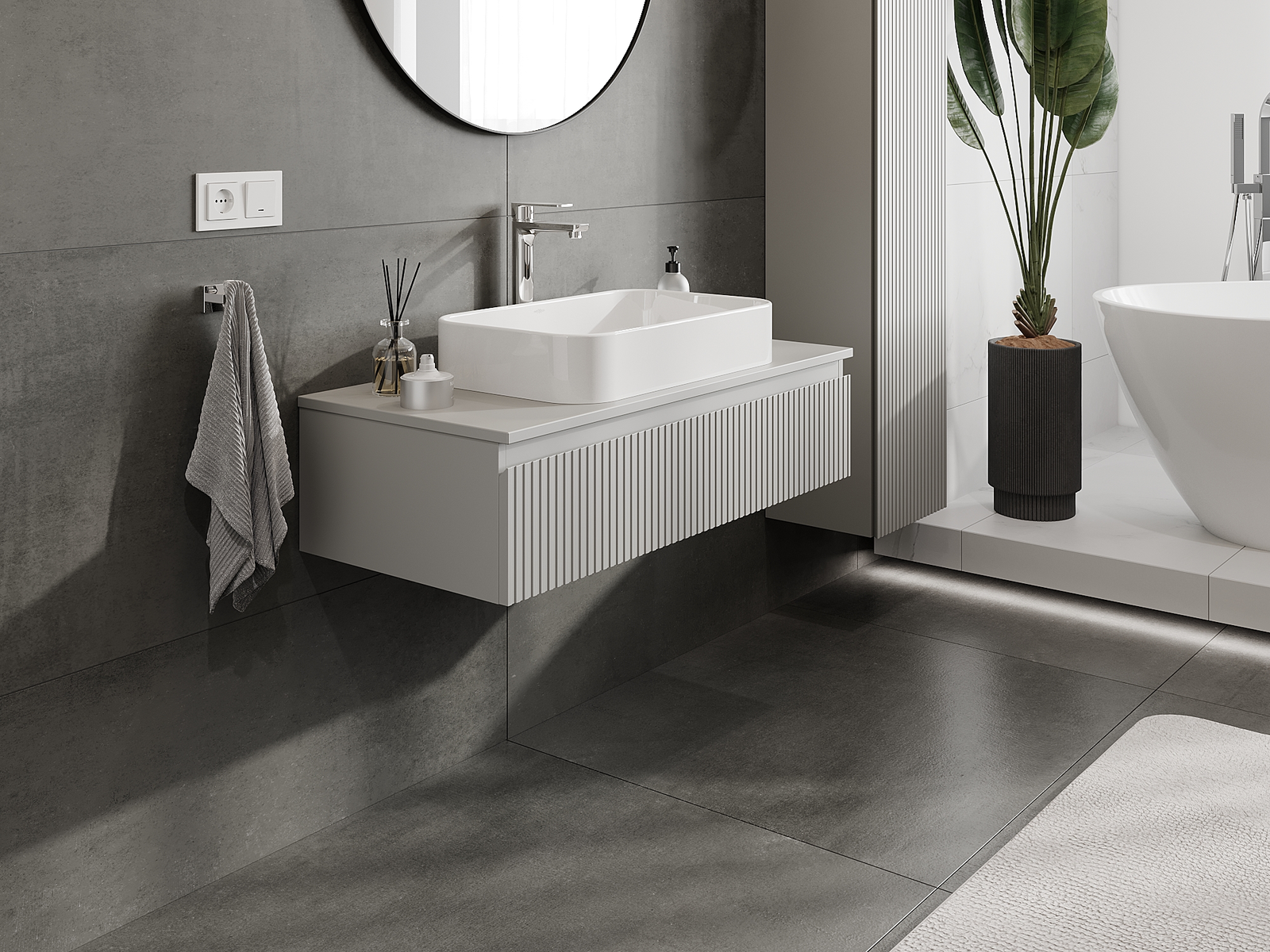 Mexen Rivel kúpeľňová skrinka pod umývadlo 100 cm, 1 zásuvka, drážkovaná, sivá matná - 91A20-10023-1-BF62