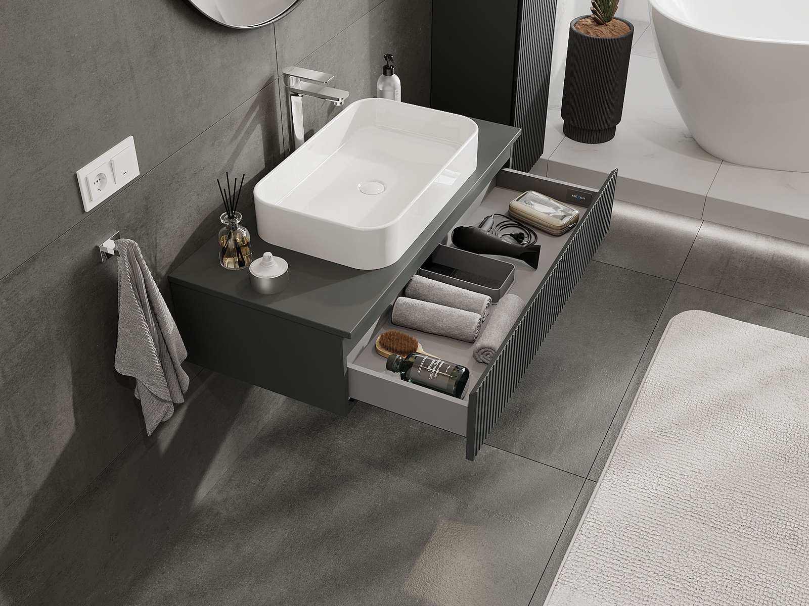 Mexen Rivel kúpeľňová skrinka pod umývadlo 100 cm, 1 zásuvka, ryhovaná, grafitová matná - 91A20-10023-1-BF66
