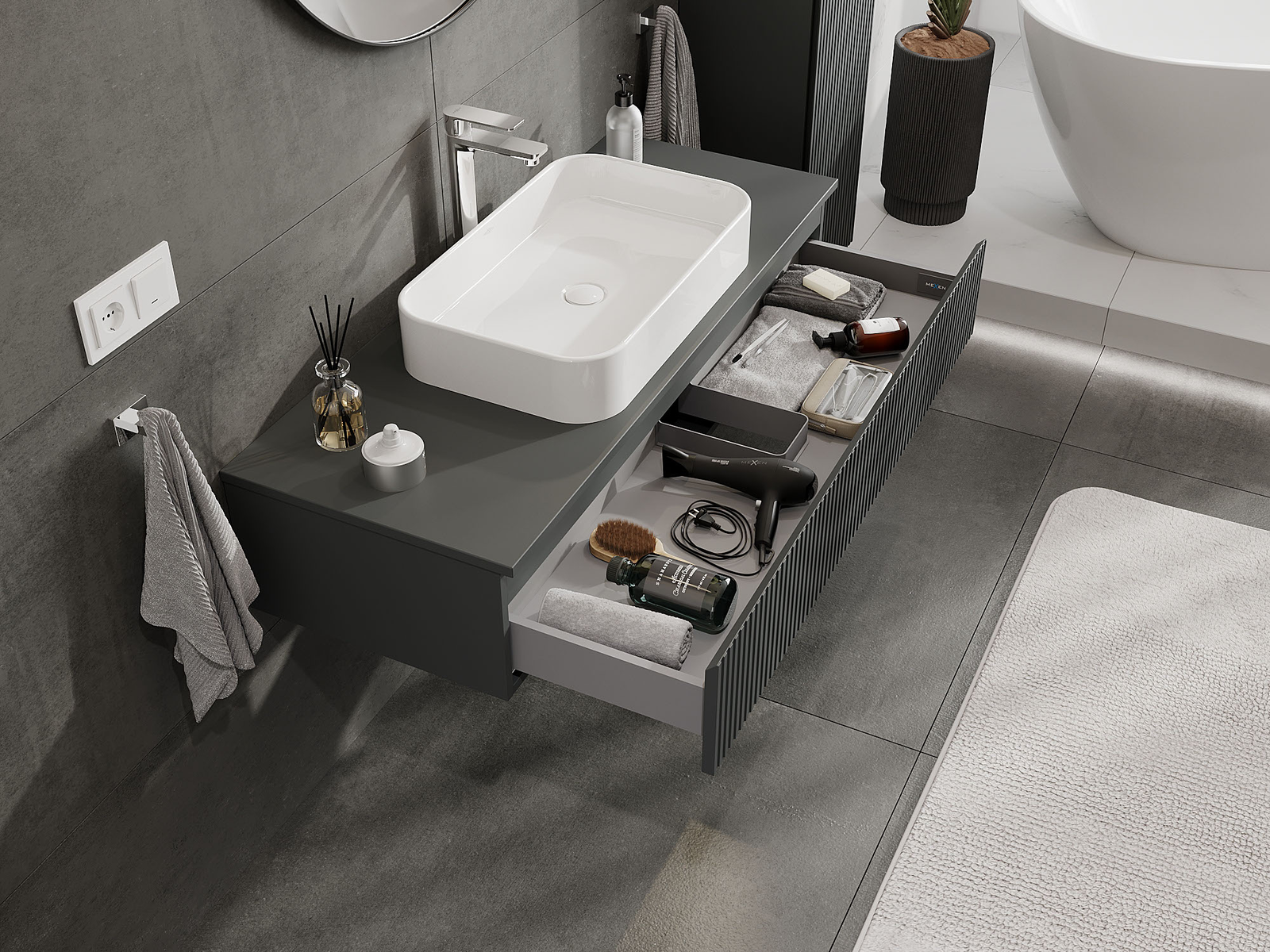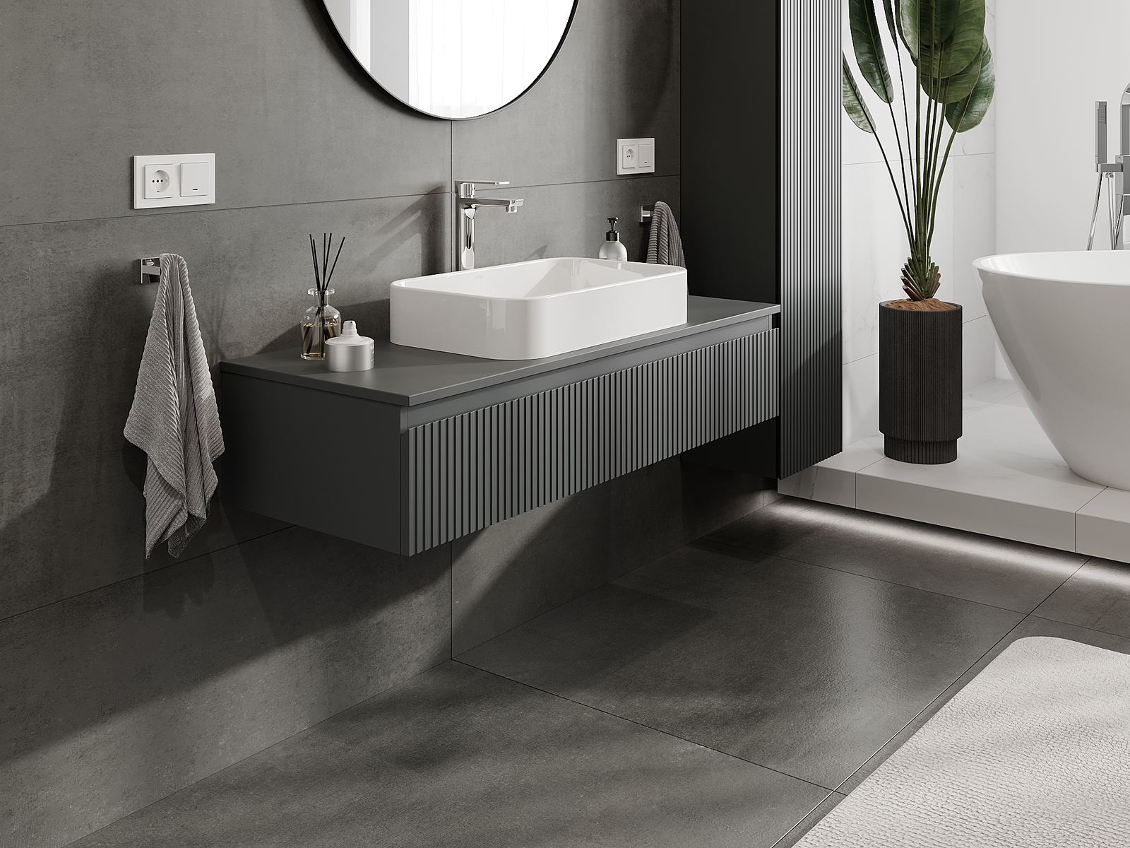 Mexen Rivel kúpeľňová skrinka pod umývadlo 120 cm, 1 zásuvka, ryhovaná, sivá mat - 91A20-12023-1-BF66