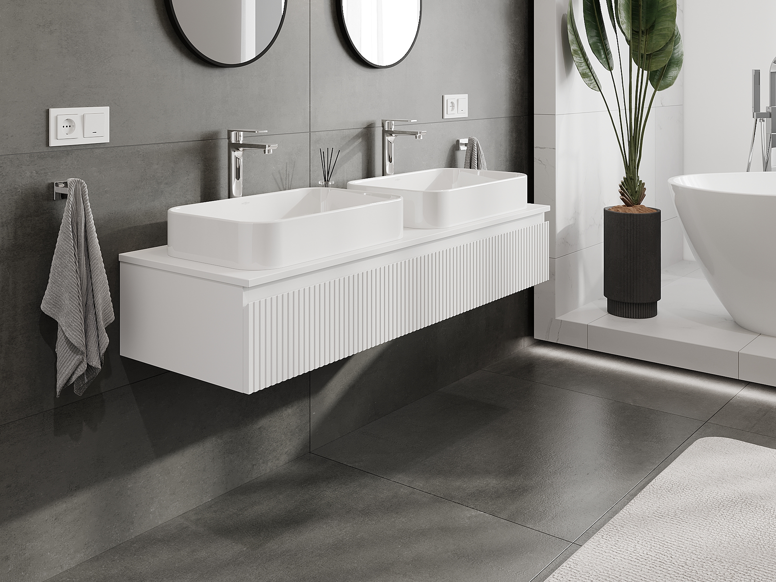 Vďaka pevným materiálom, precíznemu prevedeniu a moderným technologickým riešeniam, produkt poskytuje pohodlie používania, odolnosť voči vlhkosti a zmenám teploty, ako aj elegantný vzhľad, ktorý sa hodí k rôznym štýlom kúpeľní.