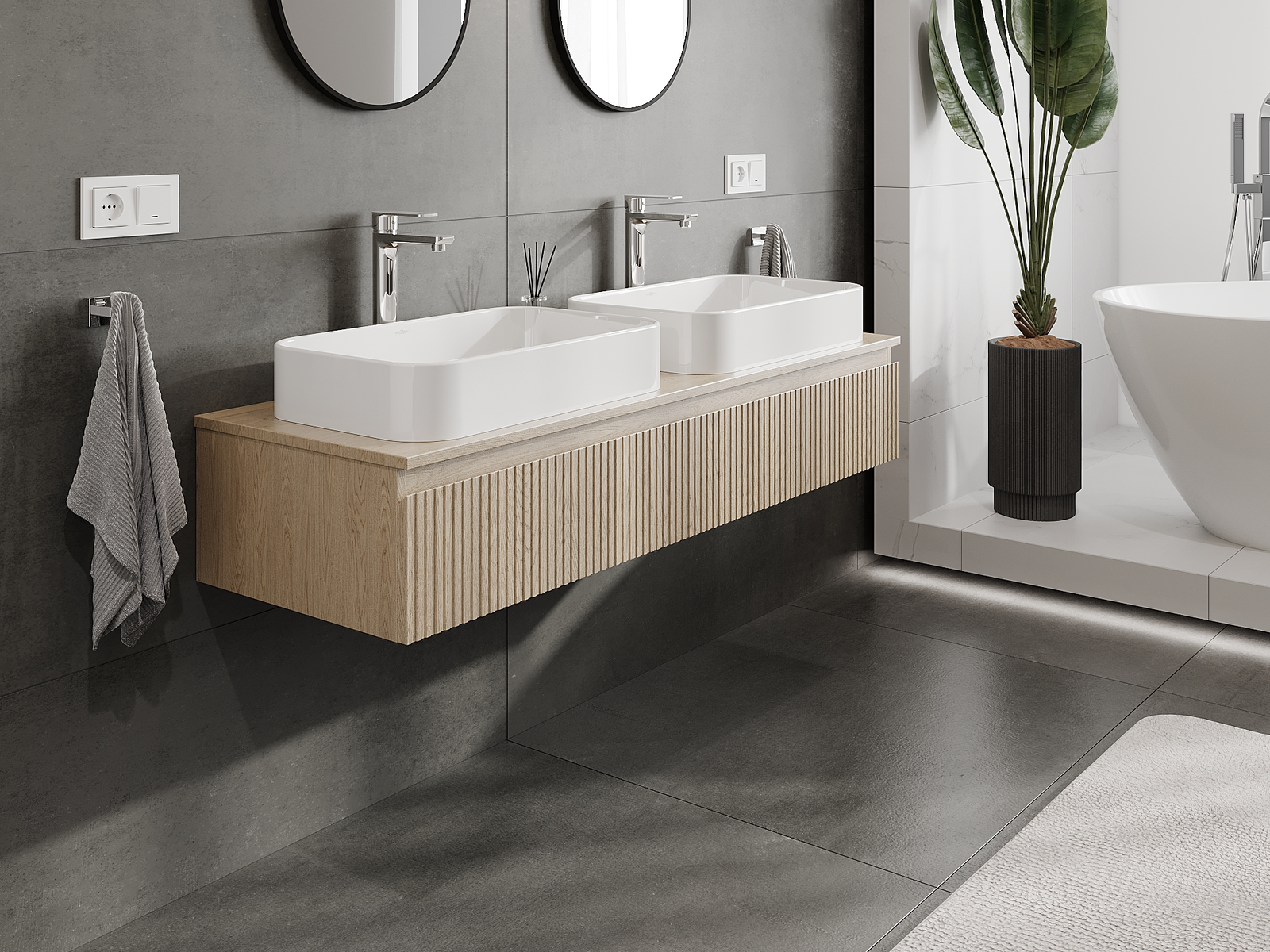 Vďaka pevným materiálom, precíznemu prevedeniu a moderným technologickým riešeniam, produkt poskytuje pohodlie používania, odolnosť voči vlhkosti a zmenám teploty, ako aj elegantný vzhľad, ktorý sa hodí k rôznym štýlom kúpeľní.