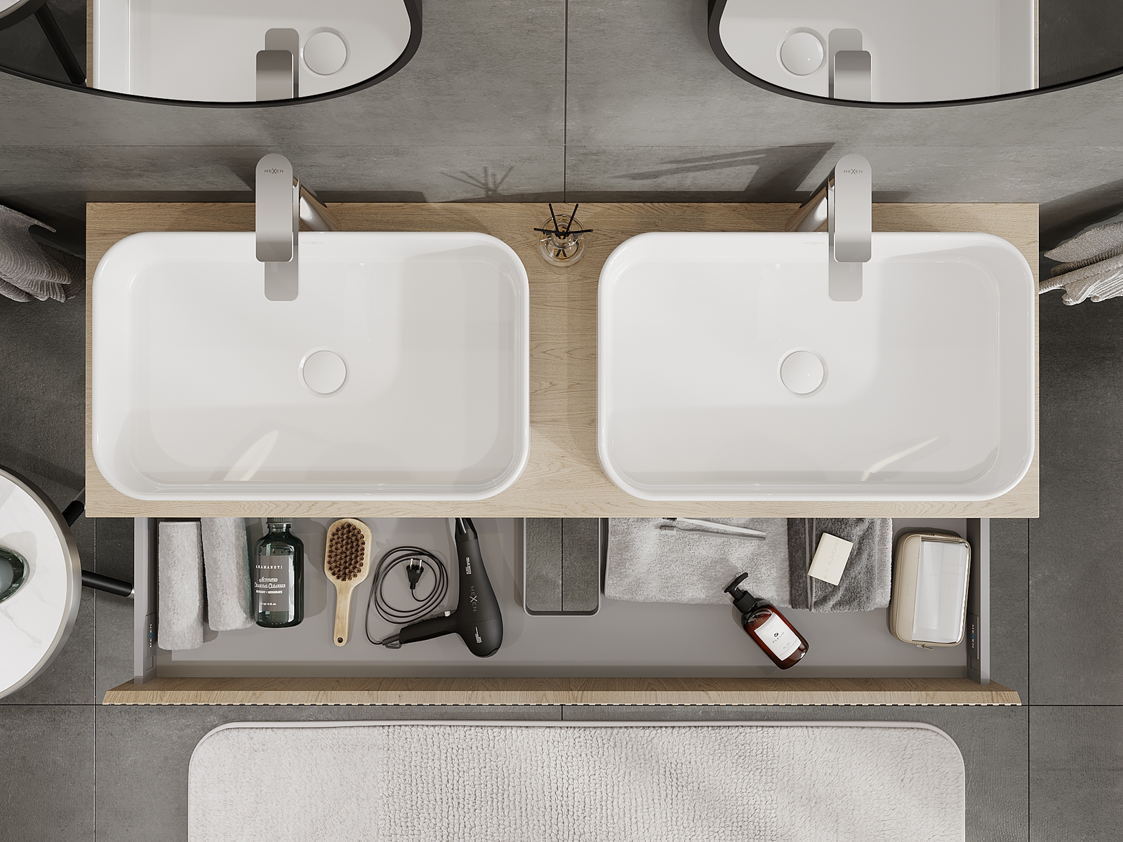 Mexen Rivel kúpeľňová skrinka pod umývadlo 140 cm, 1 zásuvka, ryhovaná, dub - 91A20-14023-1-BF81
