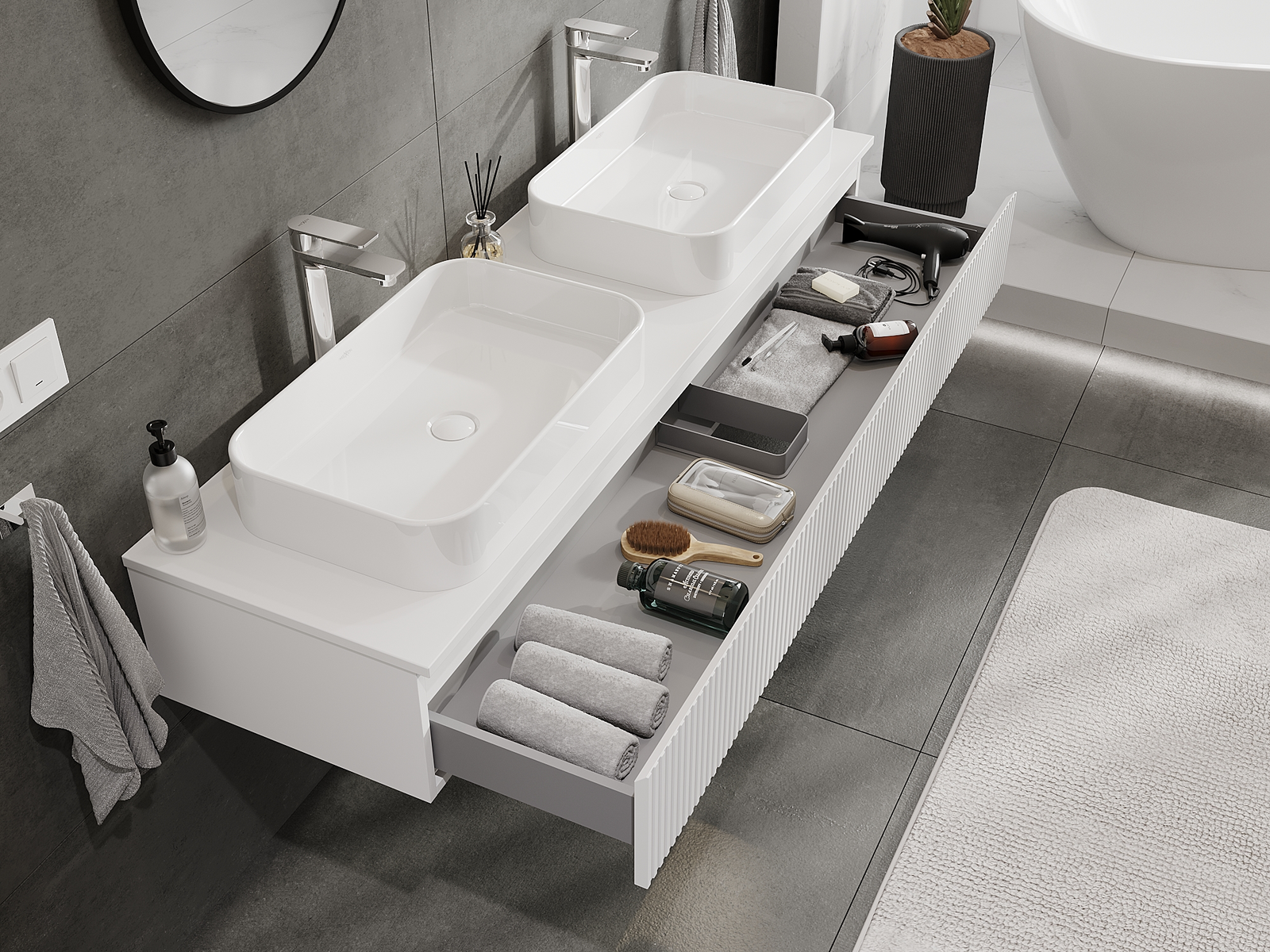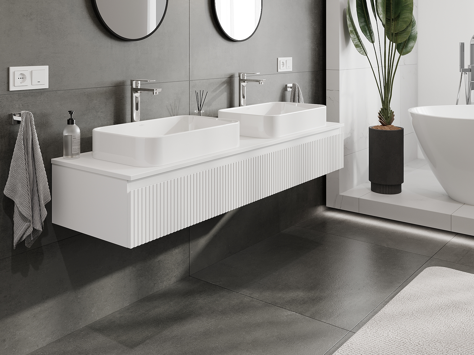Mexen Rivel kúpeľňová skrinka pod umývadlo 160 cm, 1 zásuvka, ryhovaná, biela matná - 91A20-16023-1-BF01