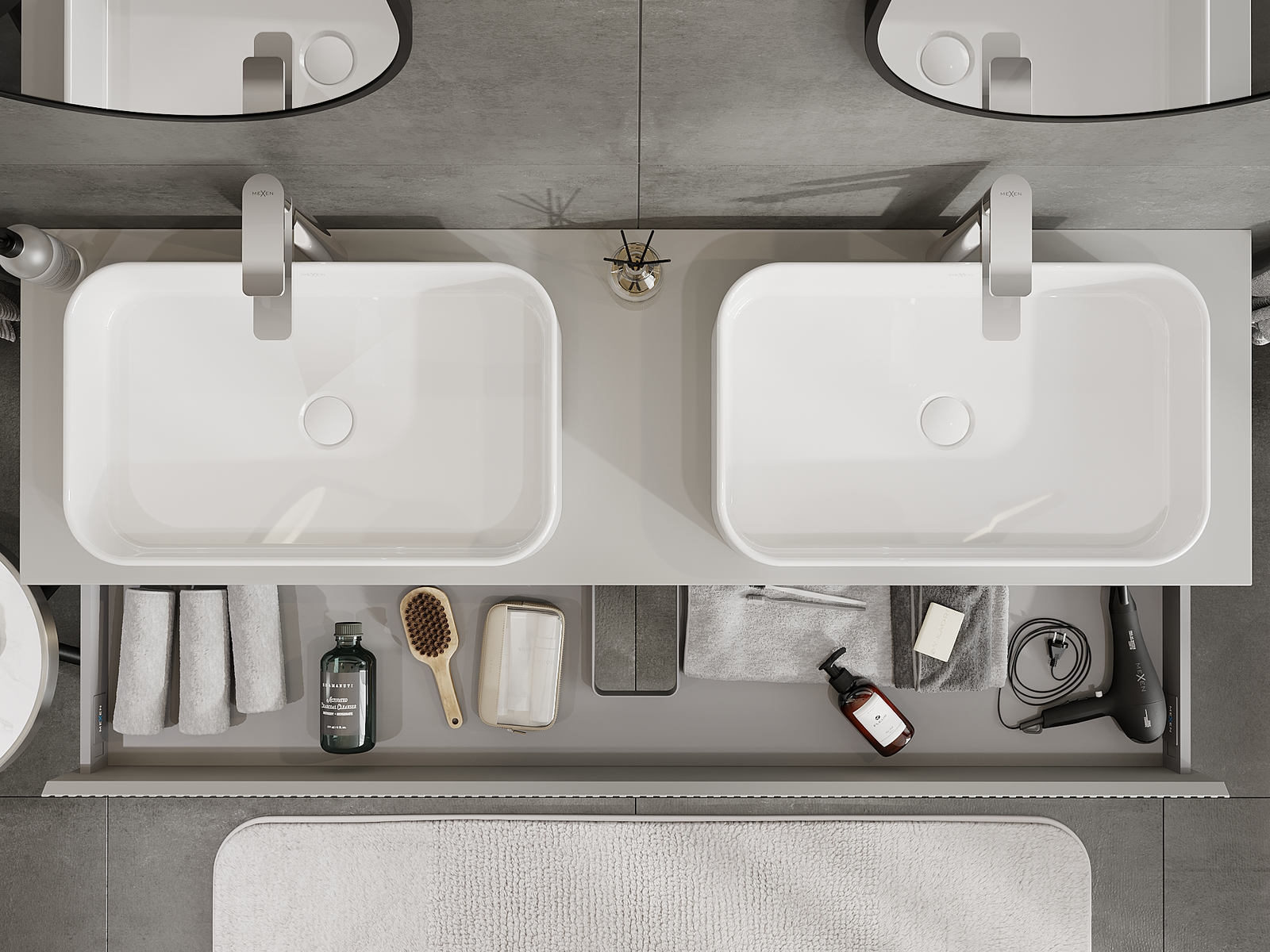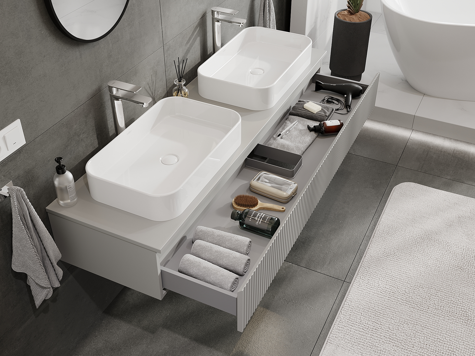 Mexen Rivel kúpeľňová skrinka pod umývadlo 160 cm, 1 zásuvka, ryhovaná, šedá matná - 91A20-16023-1-BF62