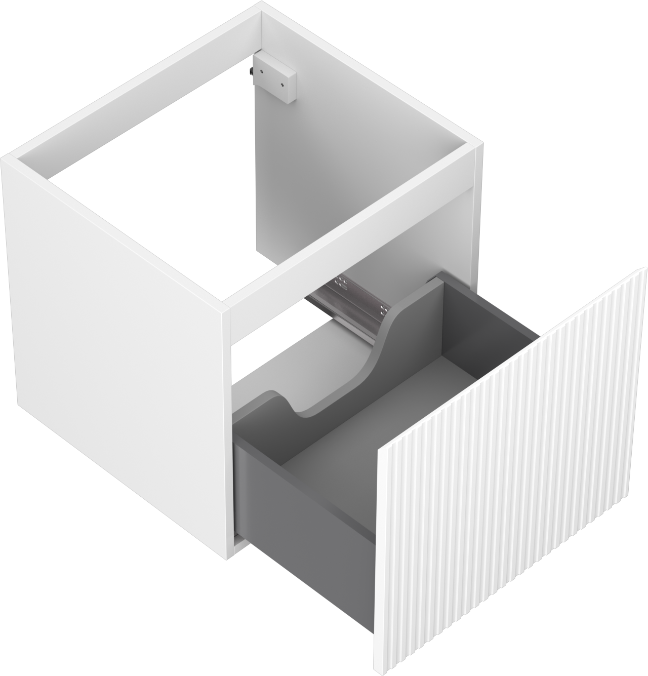 Výrez v zásuvke je navrhnutý tak, aby pojal sifón, ktorý je nevyhnutný v umývadlových inštaláciách. Vďaka tomu môže byť nábytok namontovaný plne funkčne, bez nutnosti vzdávať sa priestoru v zásuvke v prospech inštalácie.