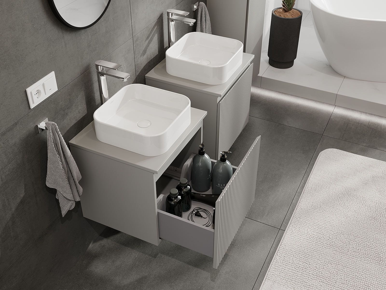 Mexen Rivel kúpeľňová skrinka pod umývadlo 50 cm, 1 zásuvka, ryhovaná, sivý mat - 91A20-05047-1-BF62