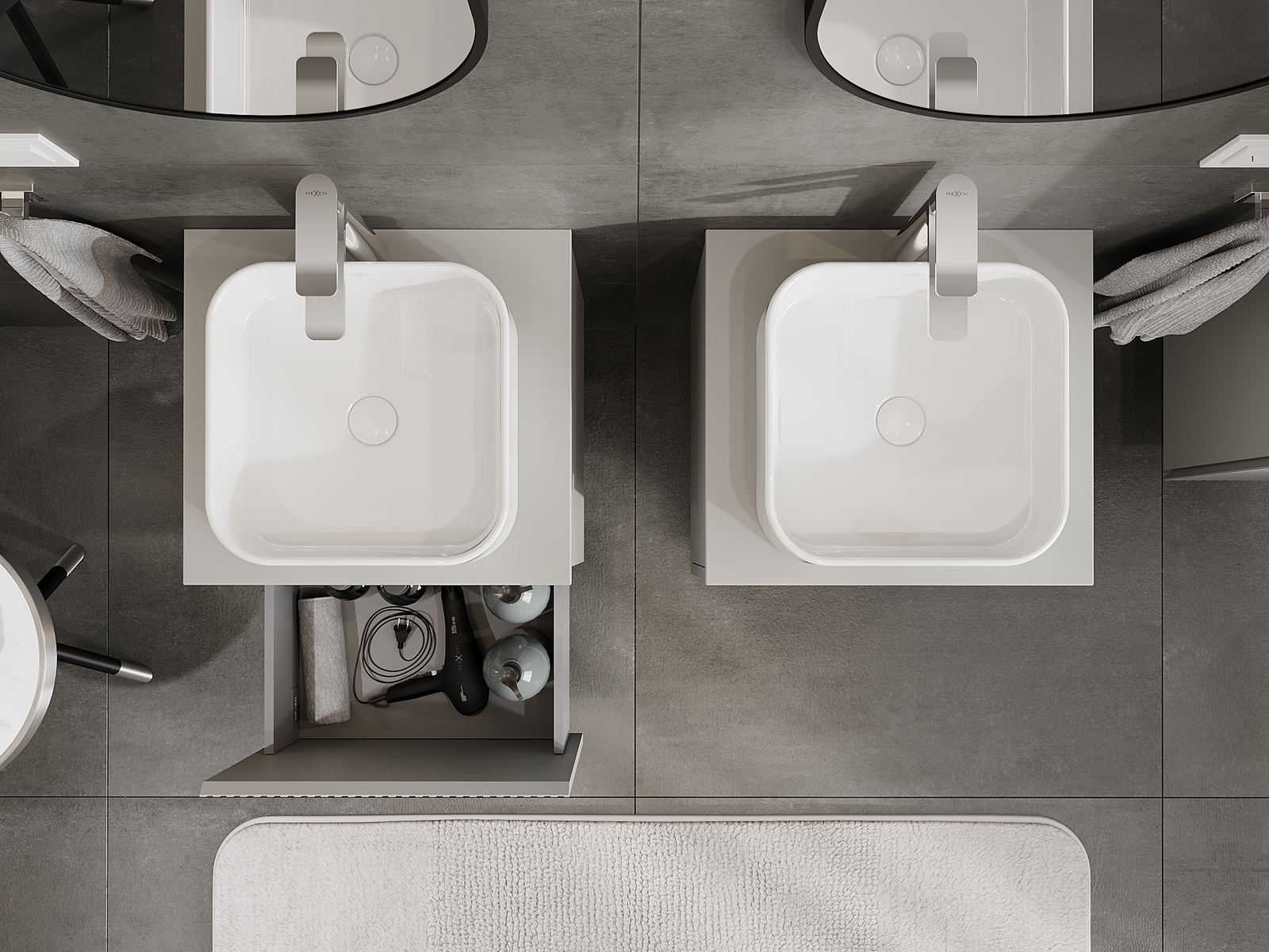 Naše modulárne kúpeľňové nábytkové prvky možno kombinovať v rôznych farebných konfiguráciách, čo umožňuje úplnú personalizáciu. Môžete si vybrať vzhľad aj funkcie jednotlivých prvkov, čo umožňuje prispôsobiť nábytok vašim vlastným štýlovým a používateľským preferenciám.