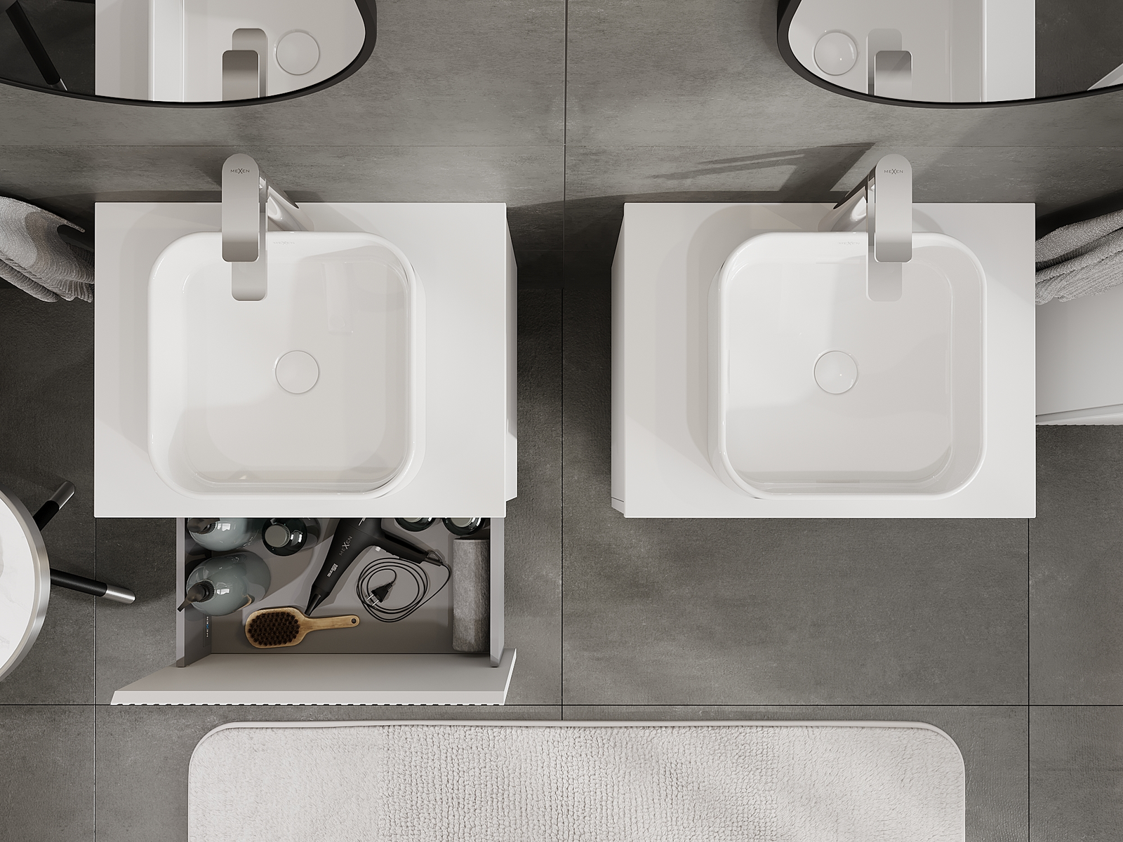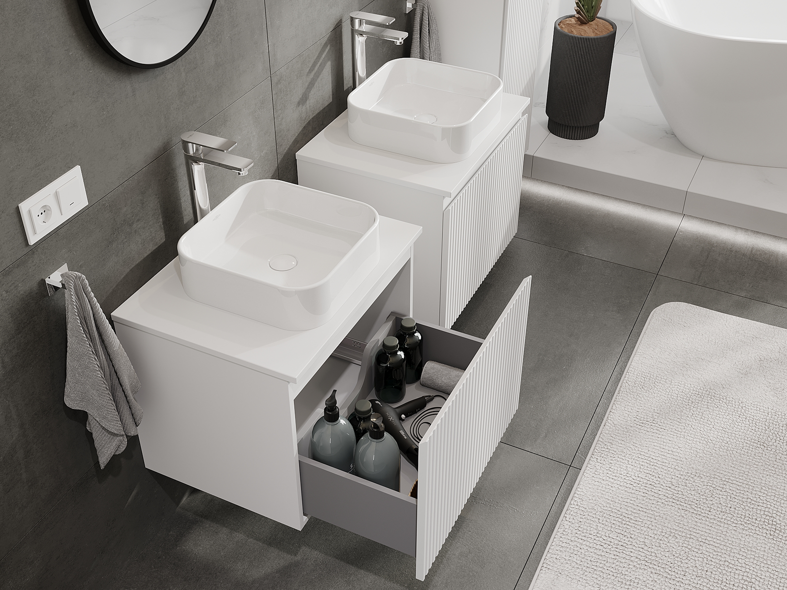 Výrez v zásuvke je navrhnutý tak, aby pojal sifón, ktorý je nevyhnutný v umývadlových inštaláciách. Vďaka tomu môže byť nábytok namontovaný plne funkčne, bez nutnosti vzdávať sa priestoru v zásuvke v prospech inštalácie.