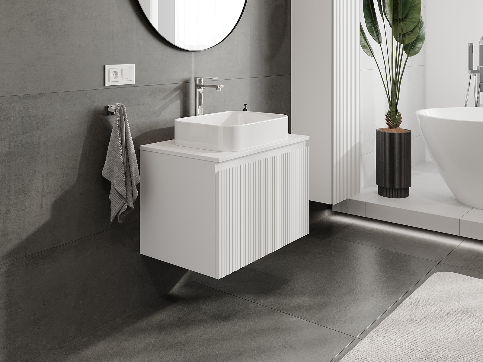 Vďaka pevným materiálom, precíznemu prevedeniu a moderným technologickým riešeniam, produkt poskytuje pohodlie používania, odolnosť voči vlhkosti a zmenám teploty, ako aj elegantný vzhľad, ktorý sa hodí k rôznym štýlom kúpeľní.