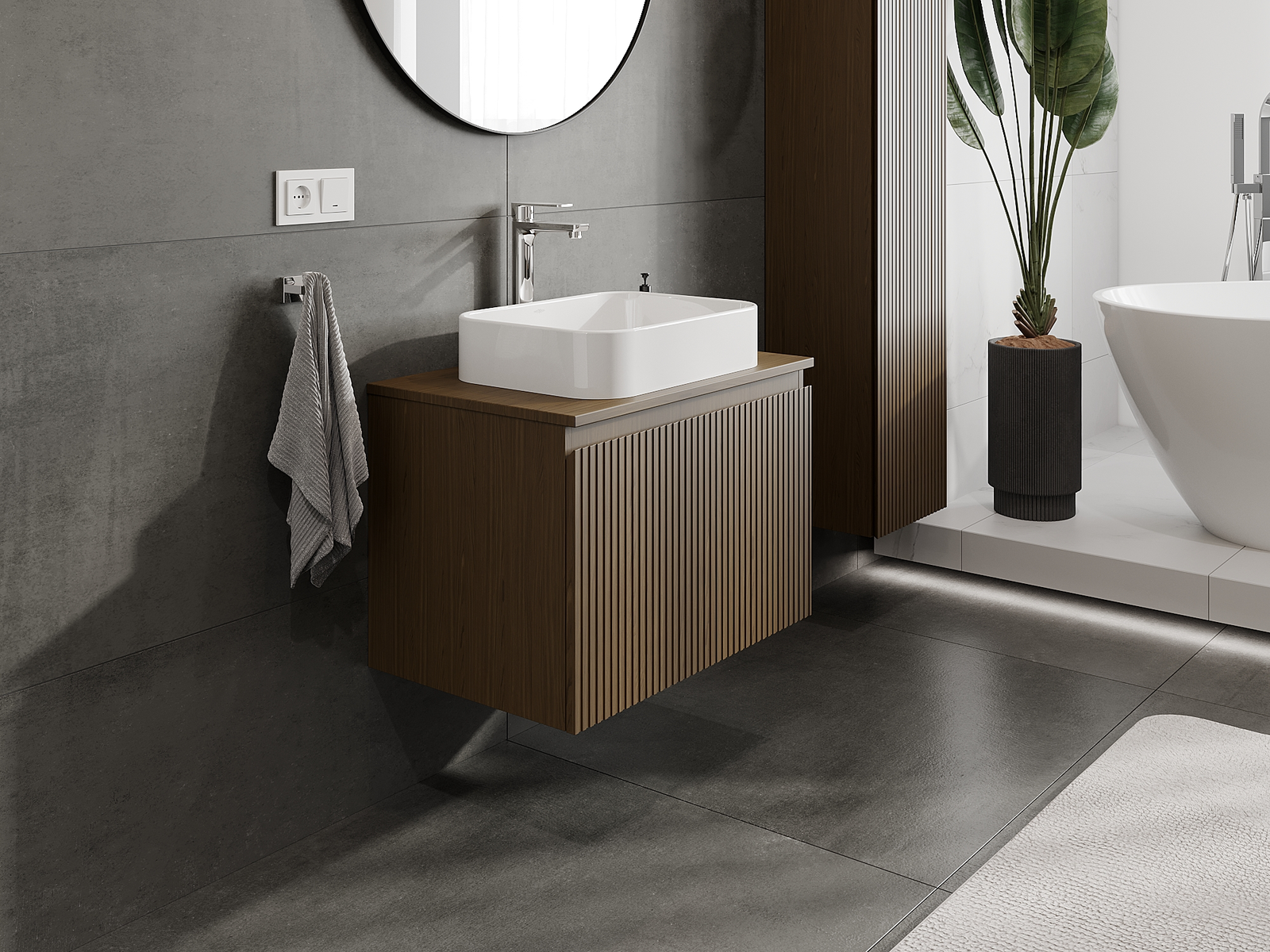 Mexen Rivel kúpeľňová skrinka pod umývadlom 70 cm, 1 zásuvka, ryhovaná, orech - 91A20-07047-1-BF86