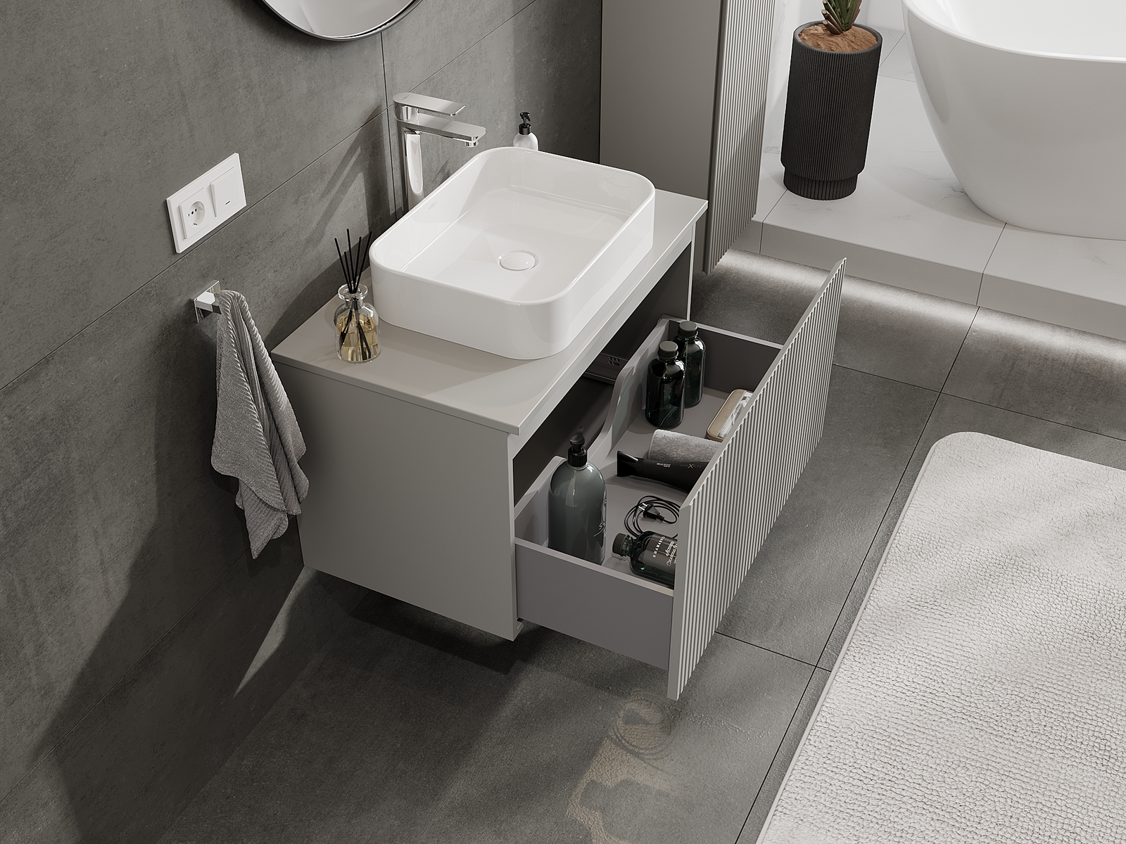 Výrez v zásuvke je navrhnutý tak, aby pojal sifón, ktorý je nevyhnutný v umývadlových inštaláciách. Vďaka tomu môže byť nábytok namontovaný plne funkčne, bez nutnosti vzdávať sa priestoru v zásuvke v prospech inštalácie.