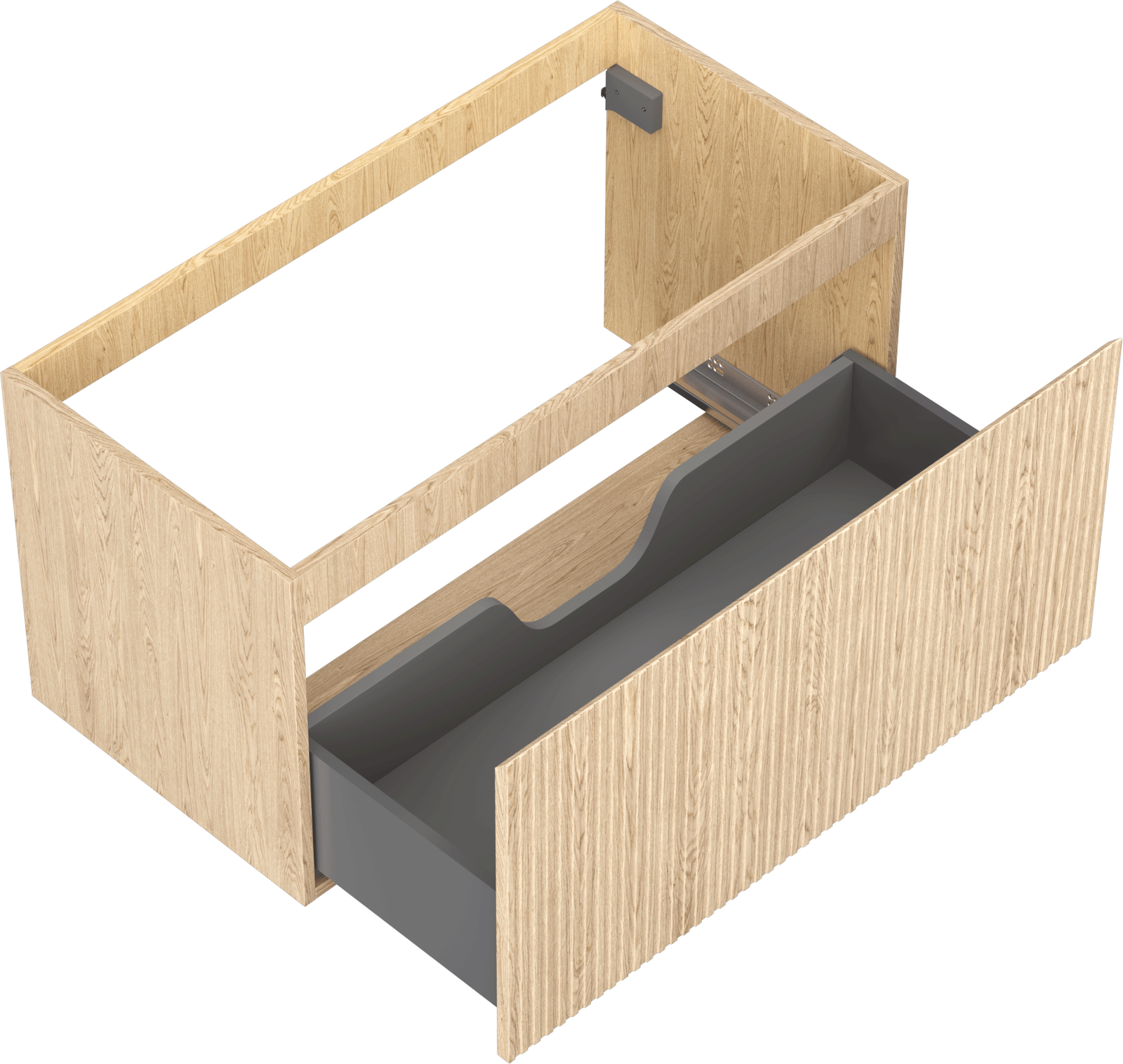 Výrez v zásuvke je navrhnutý tak, aby pojal sifón, ktorý je nevyhnutný v umývadlových inštaláciách. Vďaka tomu môže byť nábytok namontovaný plne funkčne, bez nutnosti vzdávať sa priestoru v zásuvke v prospech inštalácie.