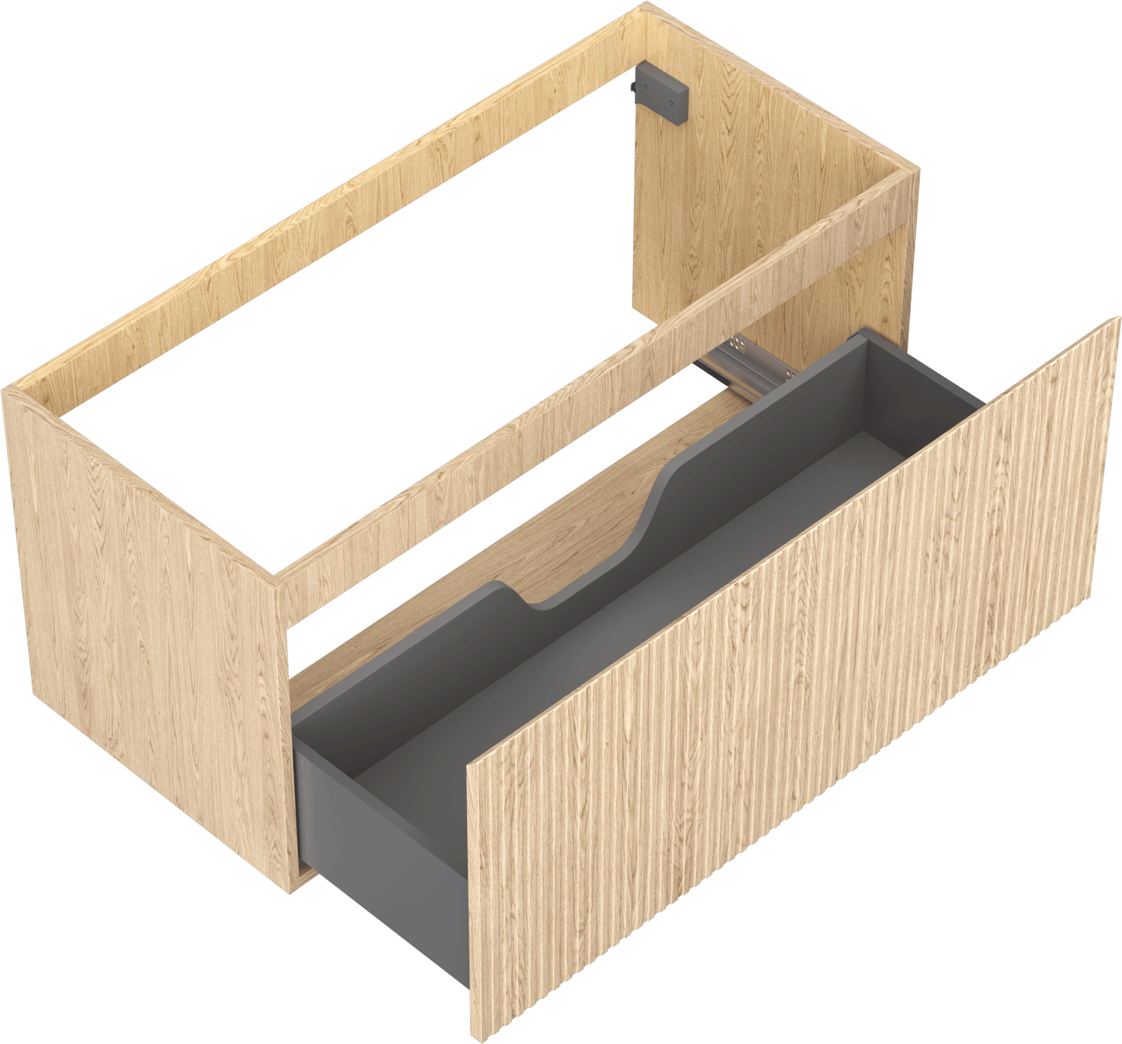 Výrez v zásuvke je navrhnutý tak, aby pojal sifón, ktorý je nevyhnutný v umývadlových inštaláciách. Vďaka tomu môže byť nábytok namontovaný plne funkčne, bez nutnosti vzdávať sa priestoru v zásuvke v prospech inštalácie.