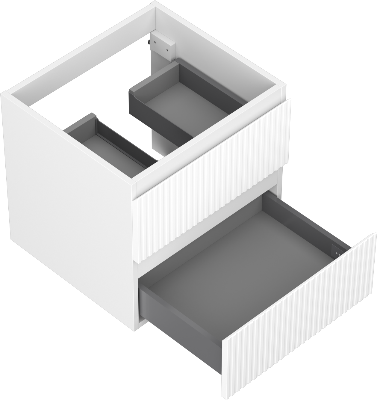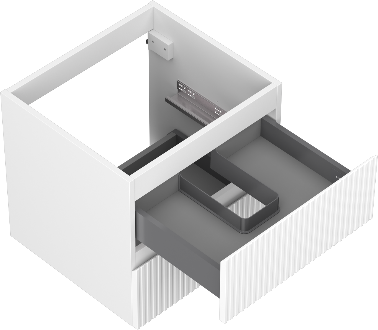 Výrez v zásuvke je navrhnutý tak, aby pojal sifón, ktorý je nevyhnutný v umývadlových inštaláciách. Vďaka tomu môže byť nábytok namontovaný plne funkčne, bez nutnosti vzdávať sa priestoru v zásuvke v prospech inštalácie.