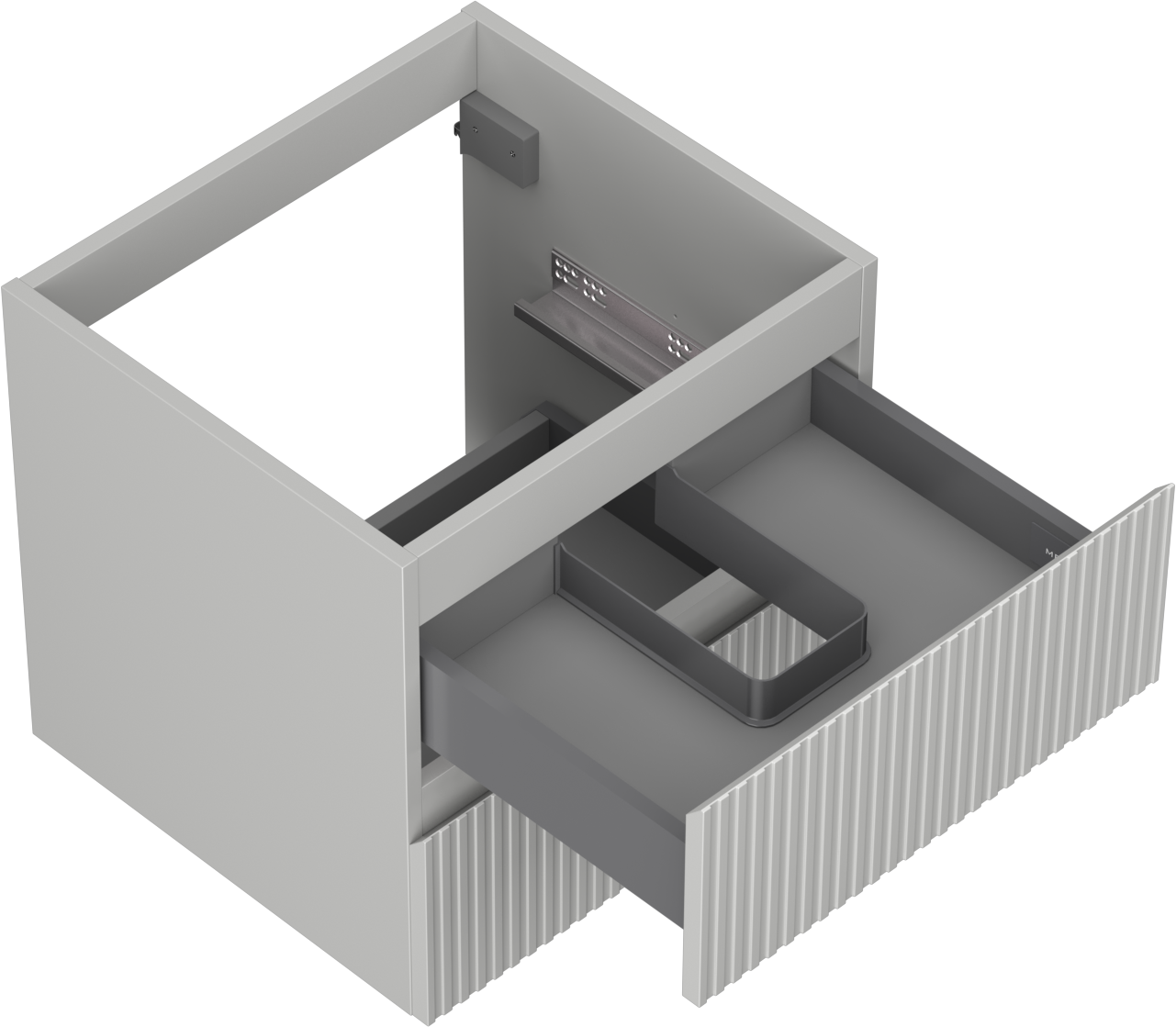 Výrez v zásuvke je navrhnutý tak, aby pojal sifón, ktorý je nevyhnutný v umývadlových inštaláciách. Vďaka tomu môže byť nábytok namontovaný plne funkčne, bez nutnosti vzdávať sa priestoru v zásuvke v prospech inštalácie.
