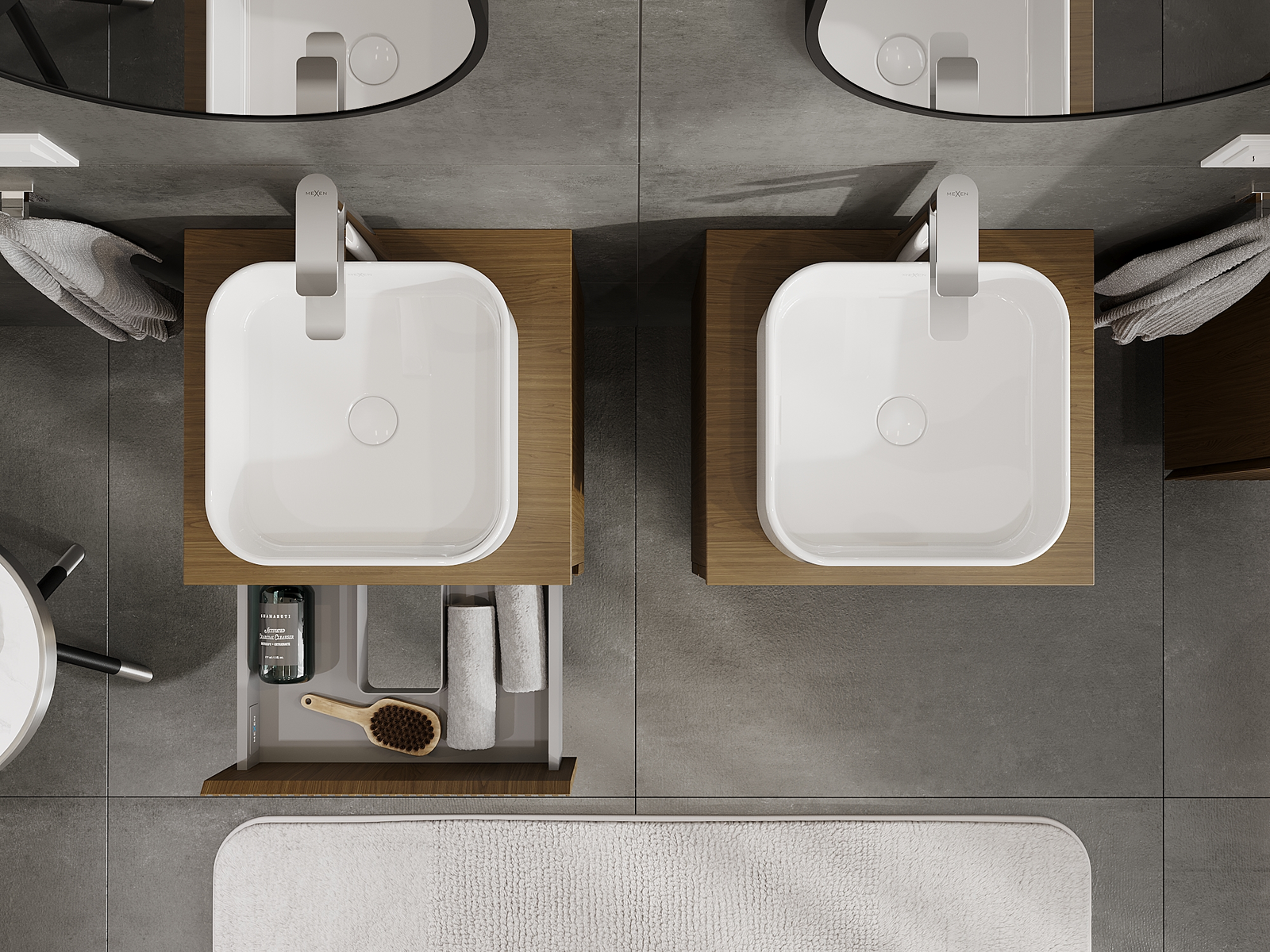 Naše modulárne kúpeľňové nábytkové prvky možno kombinovať v rôznych farebných konfiguráciách, čo umožňuje úplnú personalizáciu. Môžete si vybrať vzhľad aj funkcie jednotlivých prvkov, čo umožňuje prispôsobiť nábytok vašim vlastným štýlovým a používateľským preferenciám.