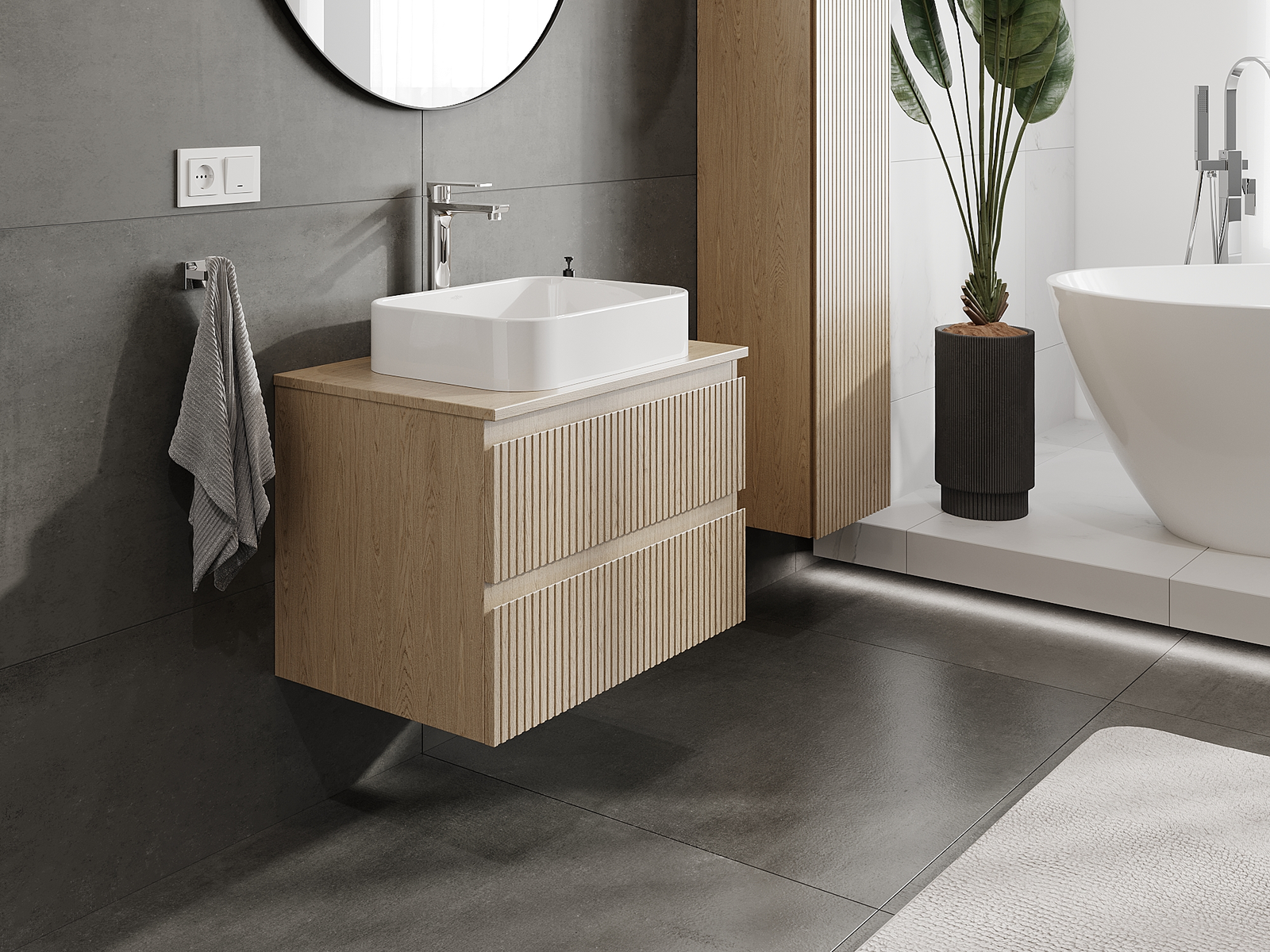 Naše modulárne kúpeľňové nábytkové prvky možno kombinovať v rôznych farebných konfiguráciách, čo umožňuje úplnú personalizáciu. Môžete si vybrať vzhľad aj funkcie jednotlivých prvkov, čo umožňuje prispôsobiť nábytok vašim vlastným štýlovým a používateľským preferenciám.