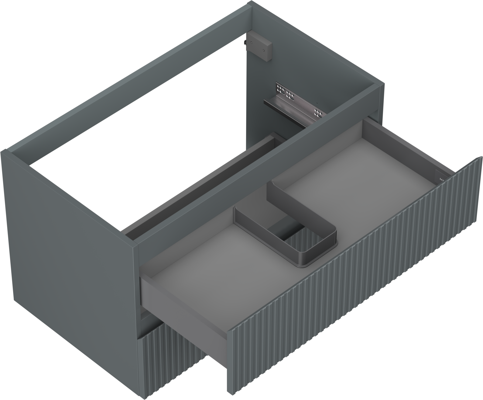 Výrez v zásuvke je navrhnutý tak, aby pojal sifón, ktorý je nevyhnutný v umývadlových inštaláciách. Vďaka tomu môže byť nábytok namontovaný plne funkčne, bez nutnosti vzdávať sa priestoru v zásuvke v prospech inštalácie.