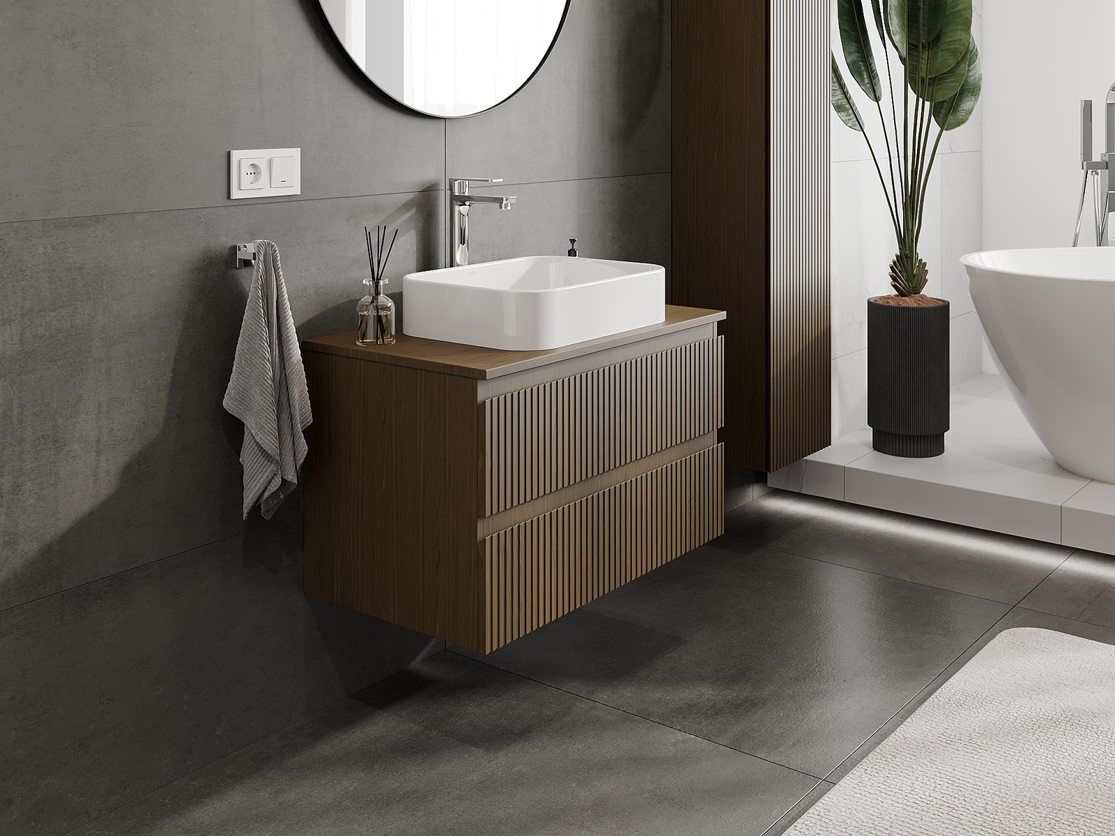 Naše modulárne kúpeľňové nábytkové prvky možno kombinovať v rôznych farebných konfiguráciách, čo umožňuje úplnú personalizáciu. Môžete si vybrať vzhľad aj funkcie jednotlivých prvkov, čo umožňuje prispôsobiť nábytok vašim vlastným štýlovým a používateľským preferenciám.