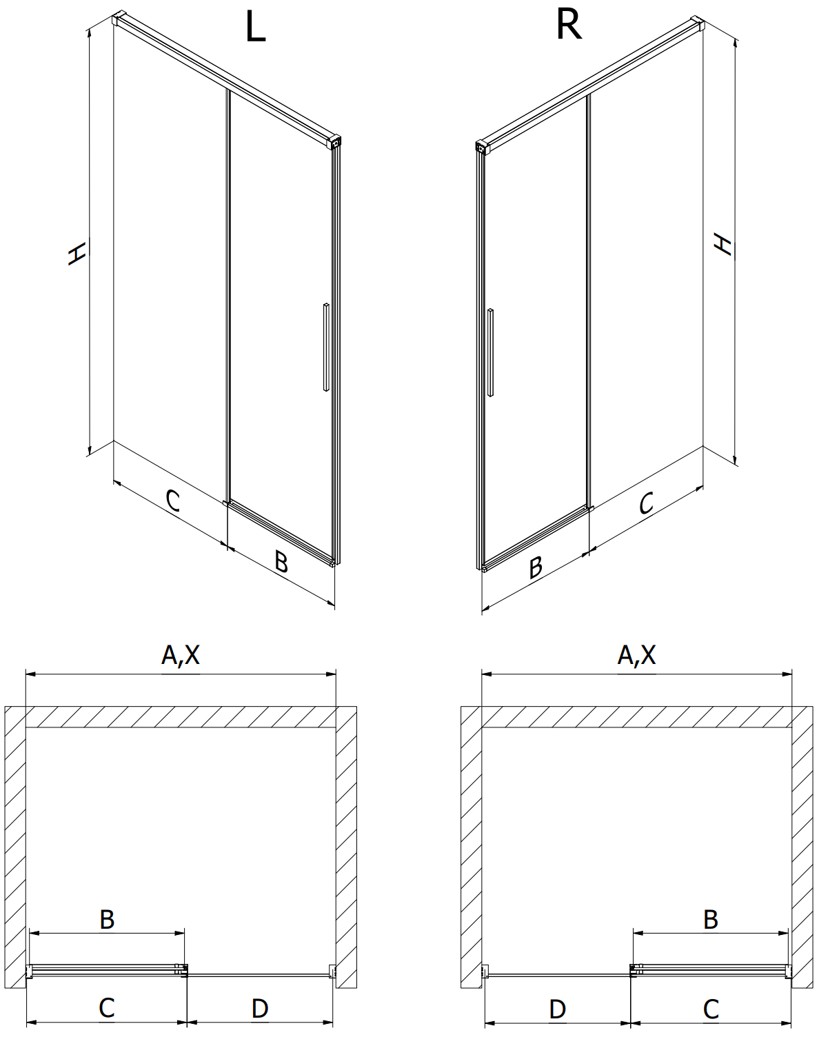 Vďaka použitiu univerzálneho systému montáže môžu byť sprchové dvere namontované na pravú alebo ľavú stranu podľa potreby. Vďaka tomu môžete ľahko naprojektovať sprchu prispôsobenú priestoru kúpeľne.