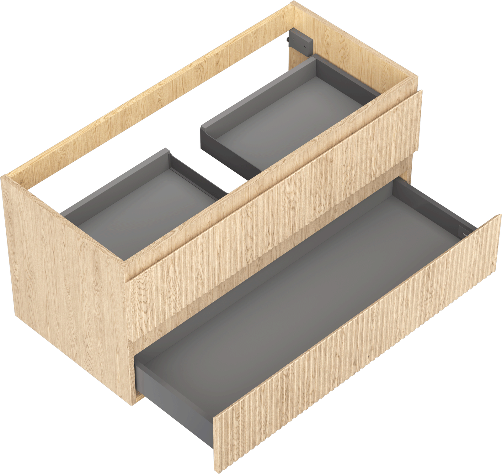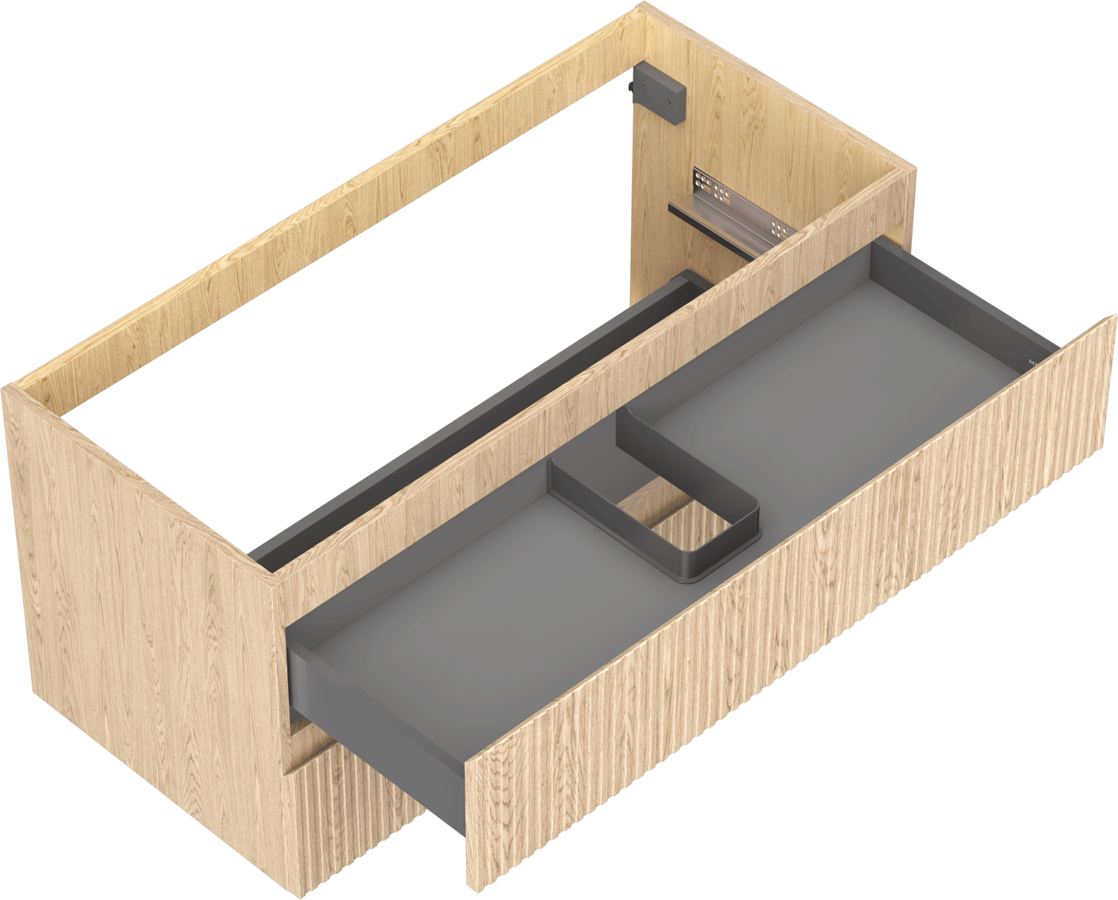 Výrez v zásuvke je navrhnutý tak, aby pojal sifón, ktorý je nevyhnutný v umývadlových inštaláciách. Vďaka tomu môže byť nábytok namontovaný plne funkčne, bez nutnosti vzdávať sa priestoru v zásuvke v prospech inštalácie.