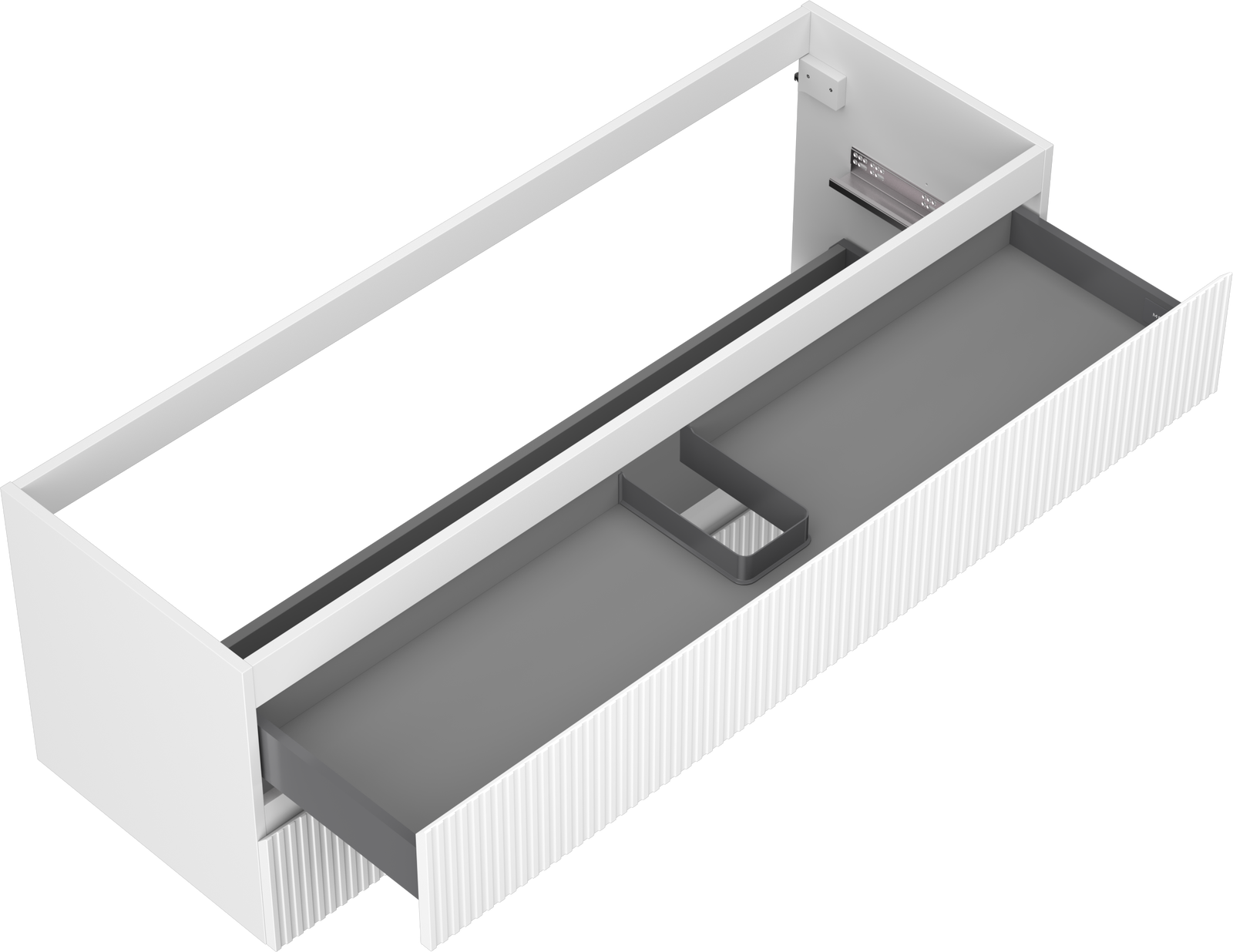 Výrez v zásuvke je navrhnutý tak, aby pojal sifón, ktorý je nevyhnutný v umývadlových inštaláciách. Vďaka tomu môže byť nábytok namontovaný plne funkčne, bez nutnosti vzdávať sa priestoru v zásuvke v prospech inštalácie.