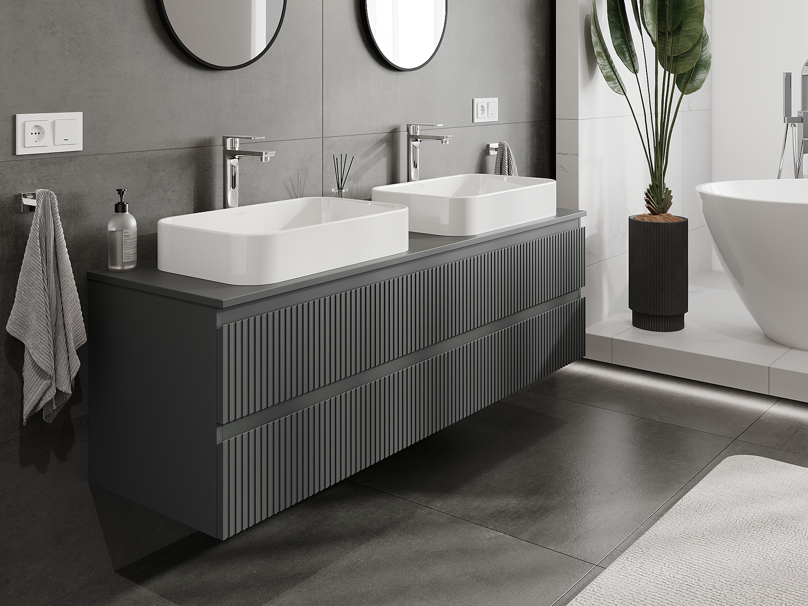 Naše modulárne kúpeľňové nábytkové prvky možno kombinovať v rôznych farebných konfiguráciách, čo umožňuje úplnú personalizáciu. Môžete si vybrať vzhľad aj funkcie jednotlivých prvkov, čo umožňuje prispôsobiť nábytok vašim vlastným štýlovým a používateľským preferenciám.