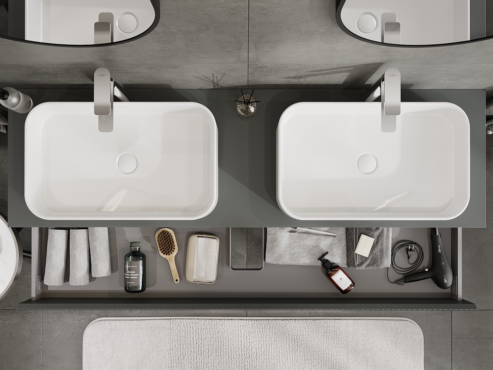 Výrez v zásuvke je navrhnutý tak, aby pojal sifón, ktorý je nevyhnutný v umývadlových inštaláciách. Vďaka tomu môže byť nábytok namontovaný plne funkčne, bez nutnosti vzdávať sa priestoru v zásuvke v prospech inštalácie.