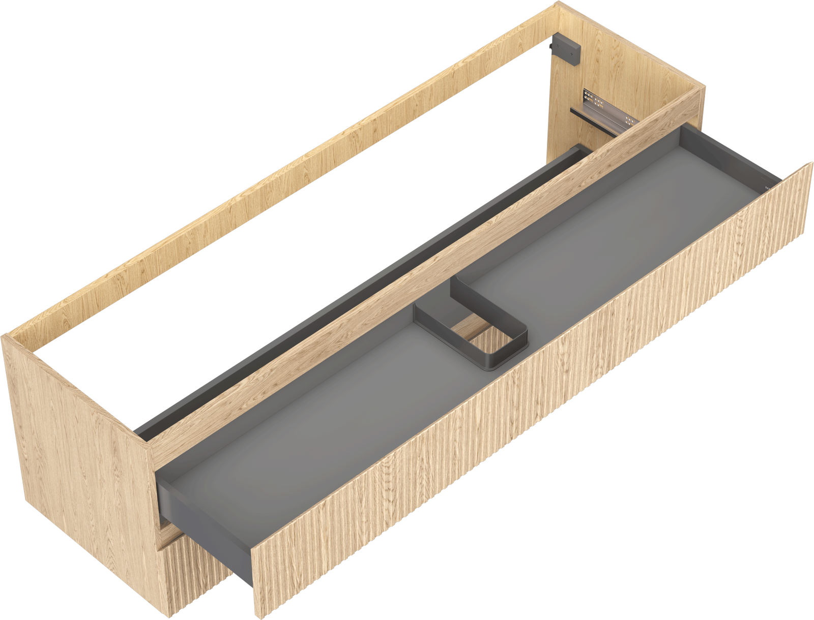 Výrez v zásuvke je navrhnutý tak, aby pojal sifón, ktorý je nevyhnutný v umývadlových inštaláciách. Vďaka tomu môže byť nábytok namontovaný plne funkčne, bez nutnosti vzdávať sa priestoru v zásuvke v prospech inštalácie.