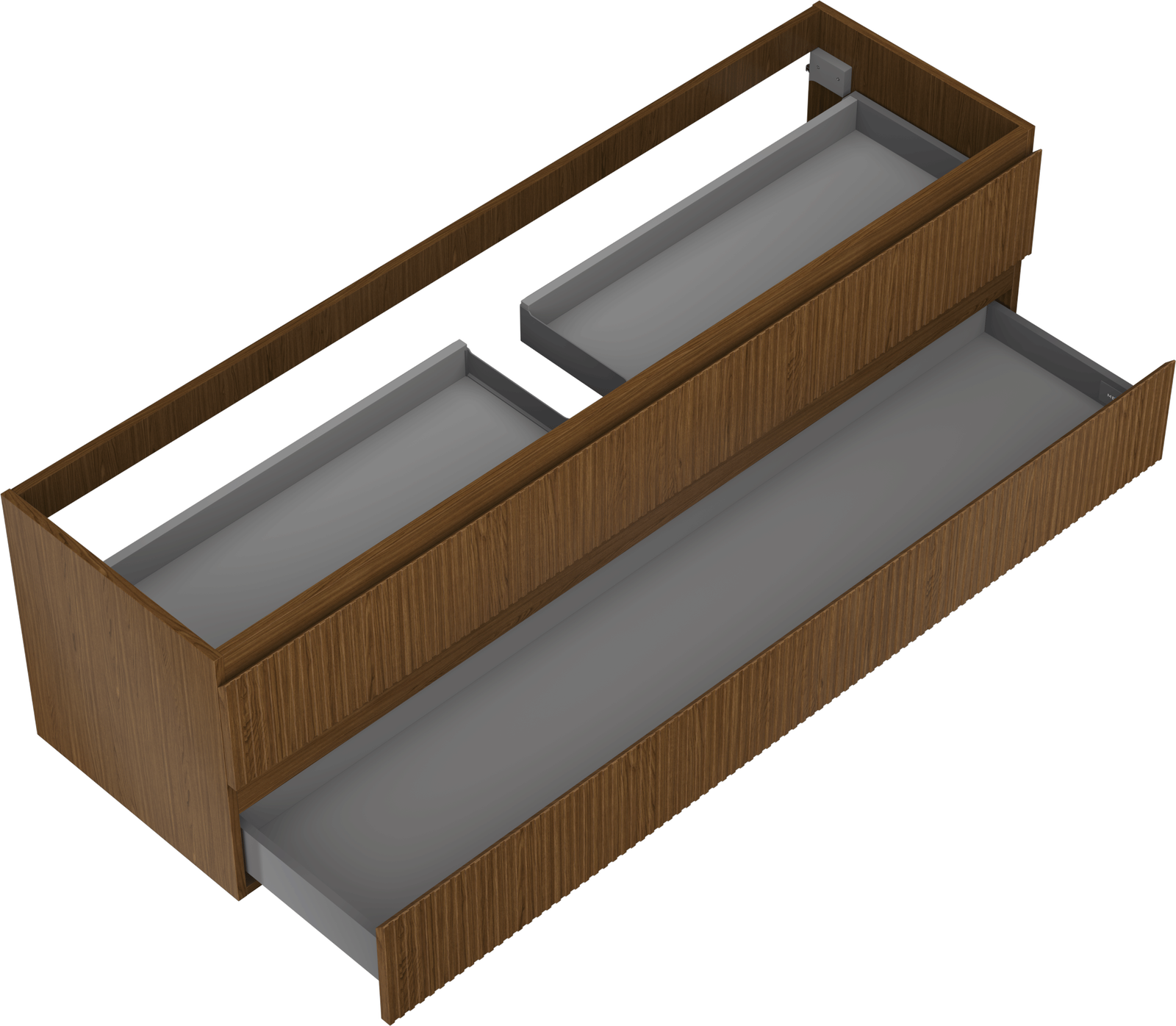 Mexen Rivel kúpeľňová skrinka pod umývadlo 160 cm, 2 zásuvky, ryhovaná, orech - 91A20-16047-2-BFF86