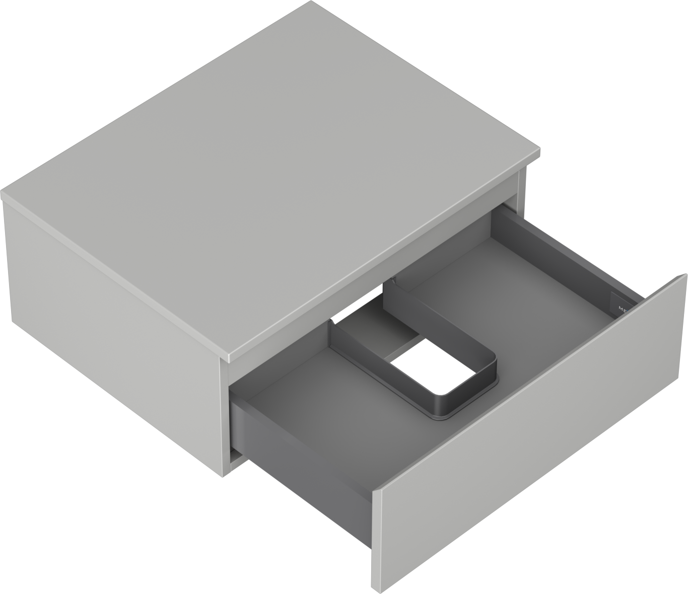 Výrez v zásuvke je navrhnutý tak, aby pojal sifón, ktorý je nevyhnutný v umývadlových inštaláciách. Vďaka tomu môže byť nábytok namontovaný plne funkčne, bez nutnosti vzdávať sa priestoru v zásuvke v prospech inštalácie.