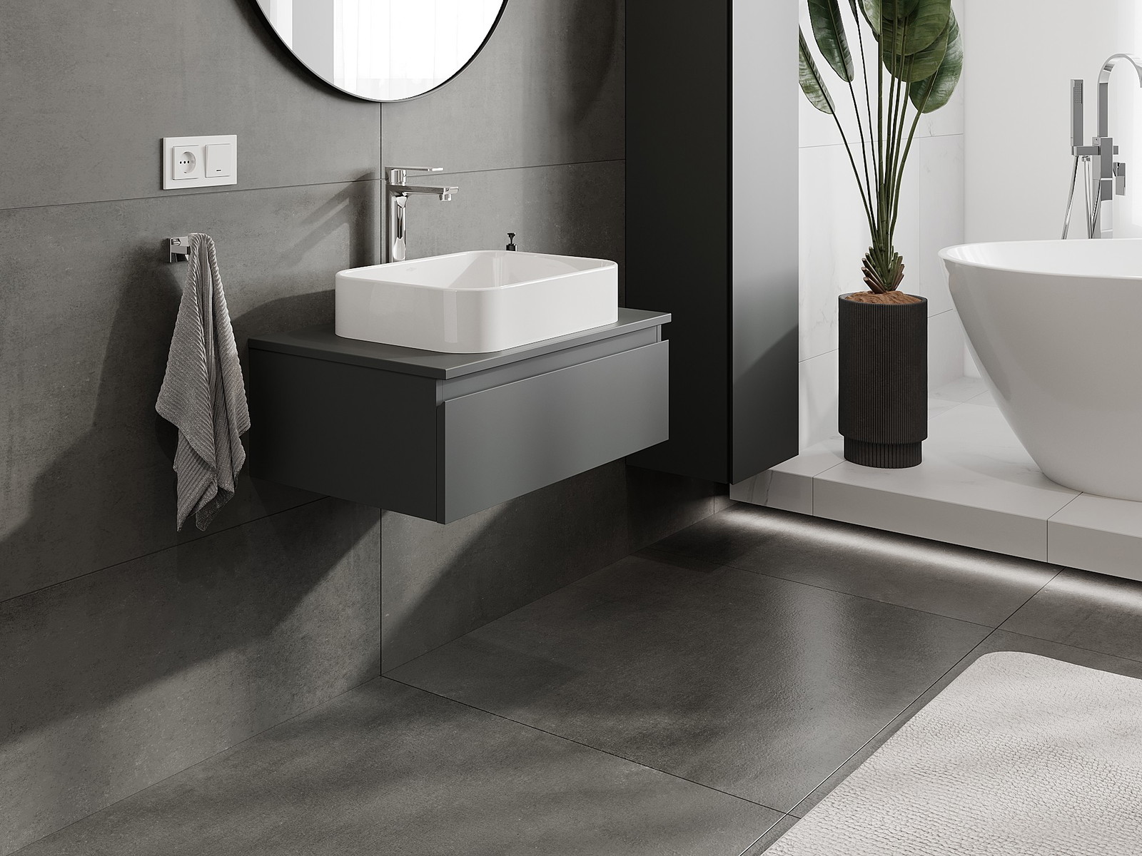 Vďaka pevným materiálom, precíznemu prevedeniu a moderným technologickým riešeniam, produkt poskytuje pohodlie používania, odolnosť voči vlhkosti a zmenám teploty, ako aj elegantný vzhľad, ktorý sa hodí k rôznym štýlom kúpeľní.