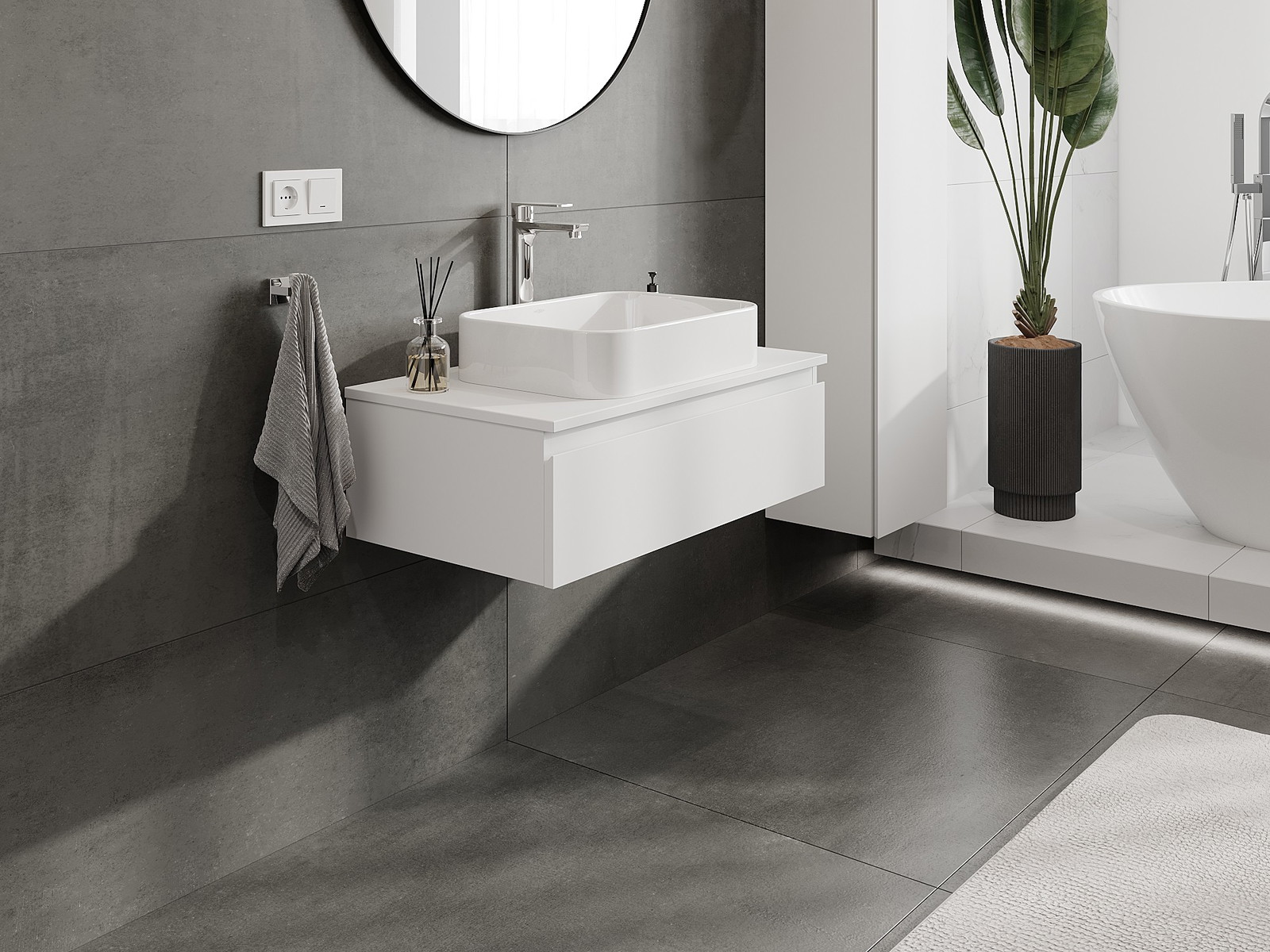 Vďaka pevným materiálom, precíznemu prevedeniu a moderným technologickým riešeniam, produkt poskytuje pohodlie používania, odolnosť voči vlhkosti a zmenám teploty, ako aj elegantný vzhľad, ktorý sa hodí k rôznym štýlom kúpeľní.