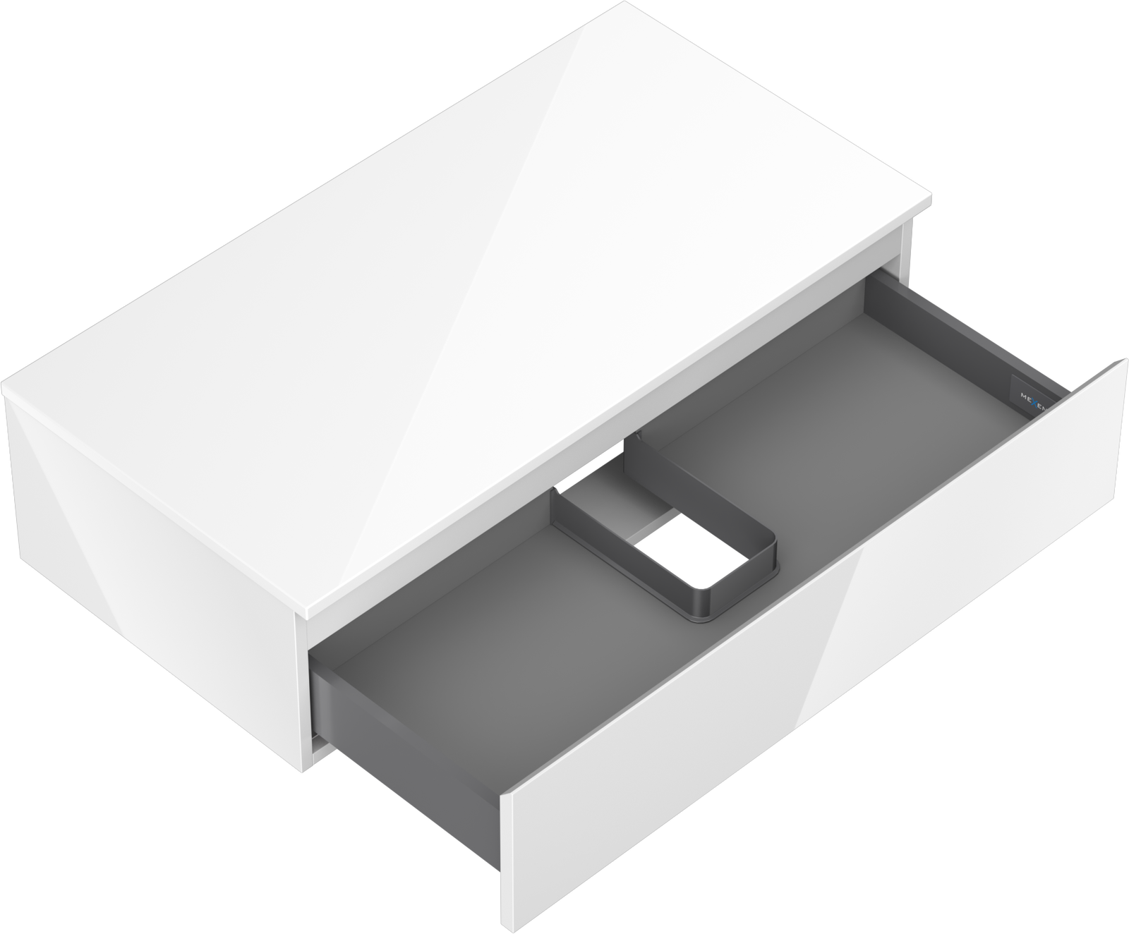 Výrez v zásuvke je navrhnutý tak, aby pojal sifón, ktorý je nevyhnutný v umývadlových inštaláciách. Vďaka tomu môže byť nábytok namontovaný plne funkčne, bez nutnosti vzdávať sa priestoru v zásuvke v prospech inštalácie.