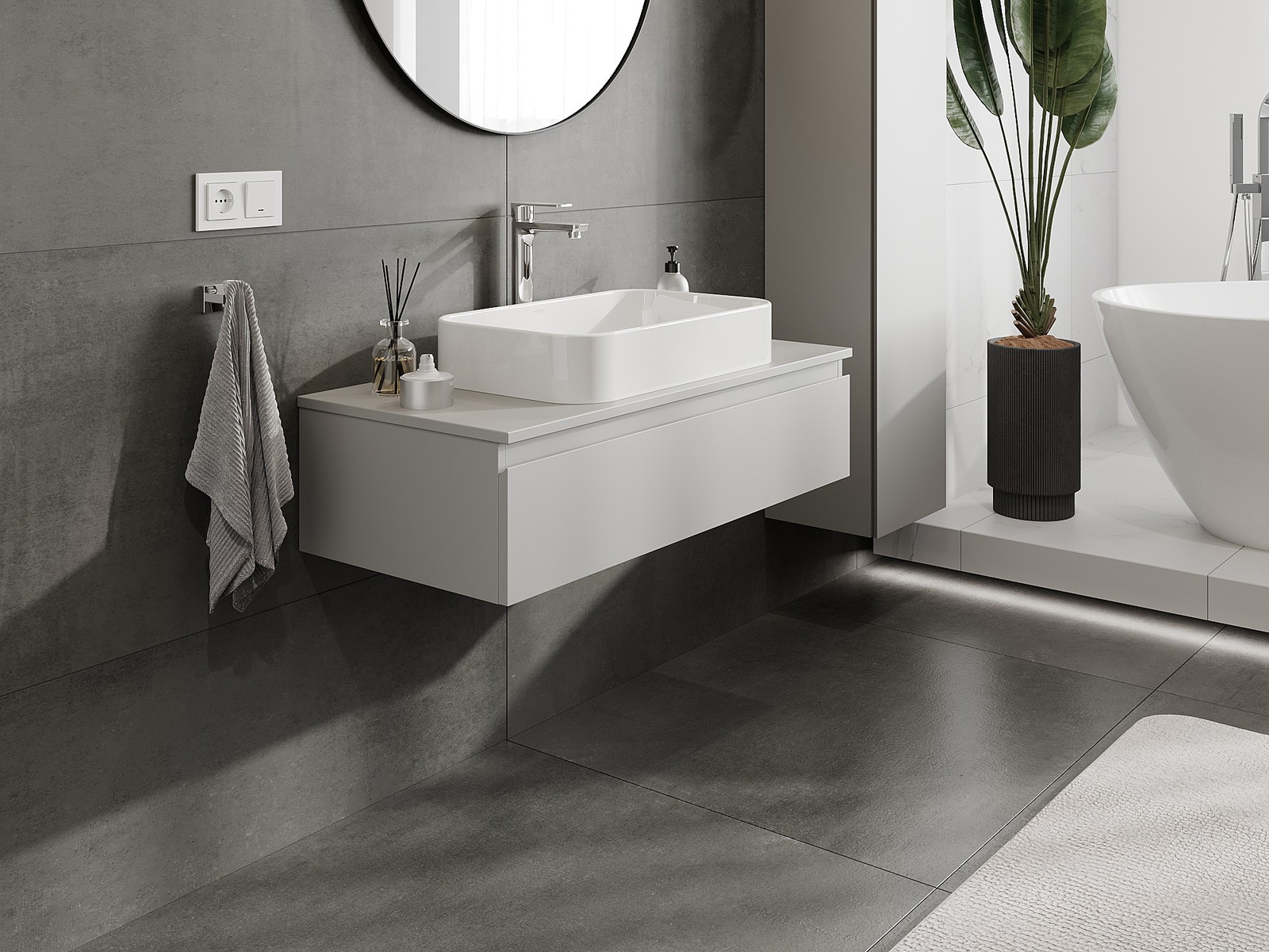 Vďaka pevným materiálom, precíznemu prevedeniu a moderným technologickým riešeniam, produkt poskytuje pohodlie používania, odolnosť voči vlhkosti a zmenám teploty, ako aj elegantný vzhľad, ktorý sa hodí k rôznym štýlom kúpeľní.
