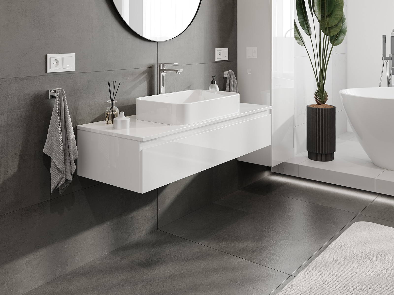 Vďaka pevným materiálom, precíznemu prevedeniu a moderným technologickým riešeniam, produkt poskytuje pohodlie používania, odolnosť voči vlhkosti a zmenám teploty, ako aj elegantný vzhľad, ktorý sa hodí k rôznym štýlom kúpeľní.