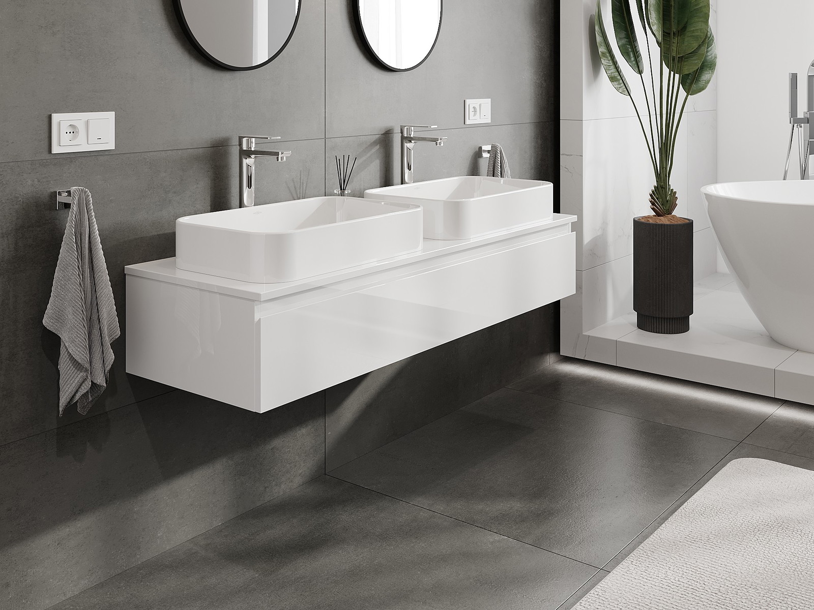 Vďaka pevným materiálom, precíznemu prevedeniu a moderným technologickým riešeniam, produkt poskytuje pohodlie používania, odolnosť voči vlhkosti a zmenám teploty, ako aj elegantný vzhľad, ktorý sa hodí k rôznym štýlom kúpeľní.
