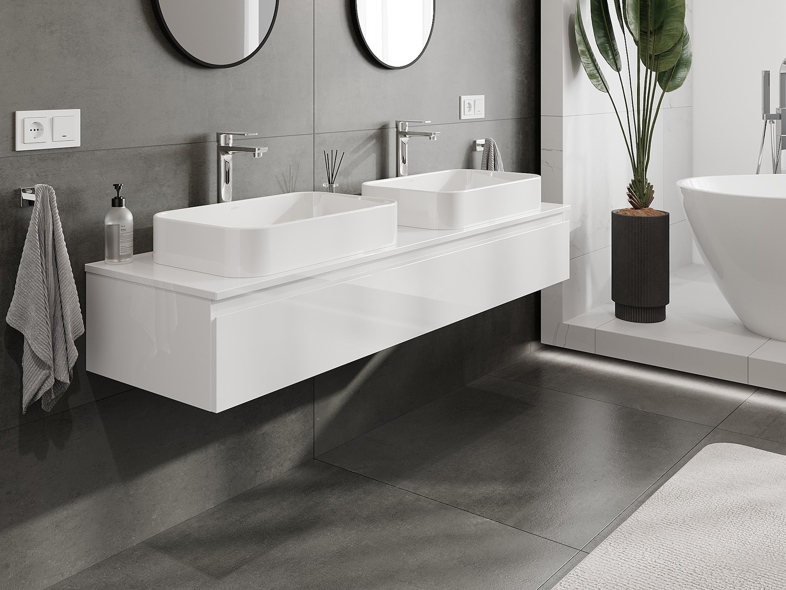 Vďaka pevným materiálom, precíznemu prevedeniu a moderným technologickým riešeniam, produkt poskytuje pohodlie používania, odolnosť voči vlhkosti a zmenám teploty, ako aj elegantný vzhľad, ktorý sa hodí k rôznym štýlom kúpeľní.