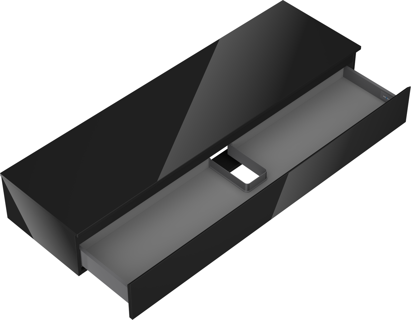 Výrez v zásuvke je navrhnutý tak, aby pojal sifón, ktorý je nevyhnutný v umývadlových inštaláciách. Vďaka tomu môže byť nábytok namontovaný plne funkčne, bez nutnosti vzdávať sa priestoru v zásuvke v prospech inštalácie.