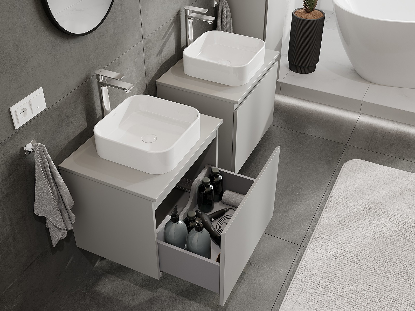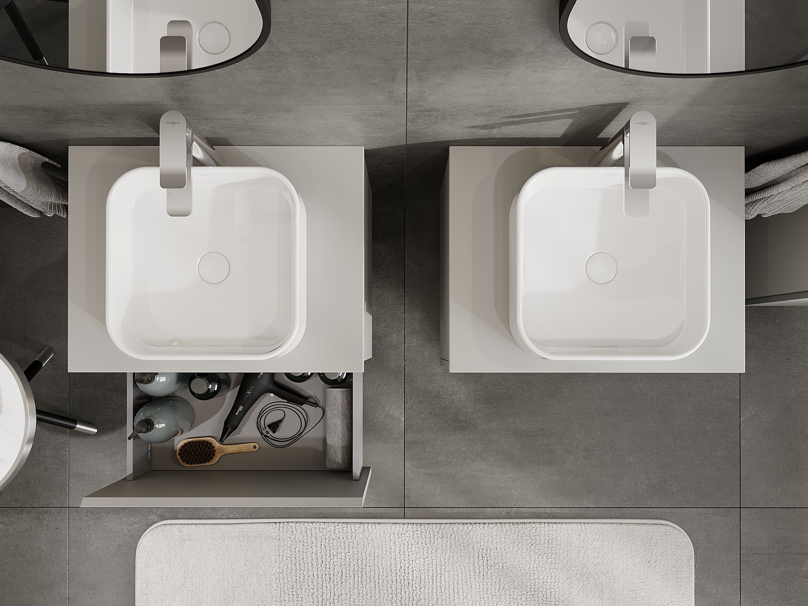 Naše modulárne kúpeľňové nábytkové prvky možno kombinovať v rôznych farebných konfiguráciách, čo umožňuje úplnú personalizáciu. Môžete si vybrať vzhľad aj funkcie jednotlivých prvkov, čo umožňuje prispôsobiť nábytok vašim vlastným štýlovým a používateľským preferenciám.
