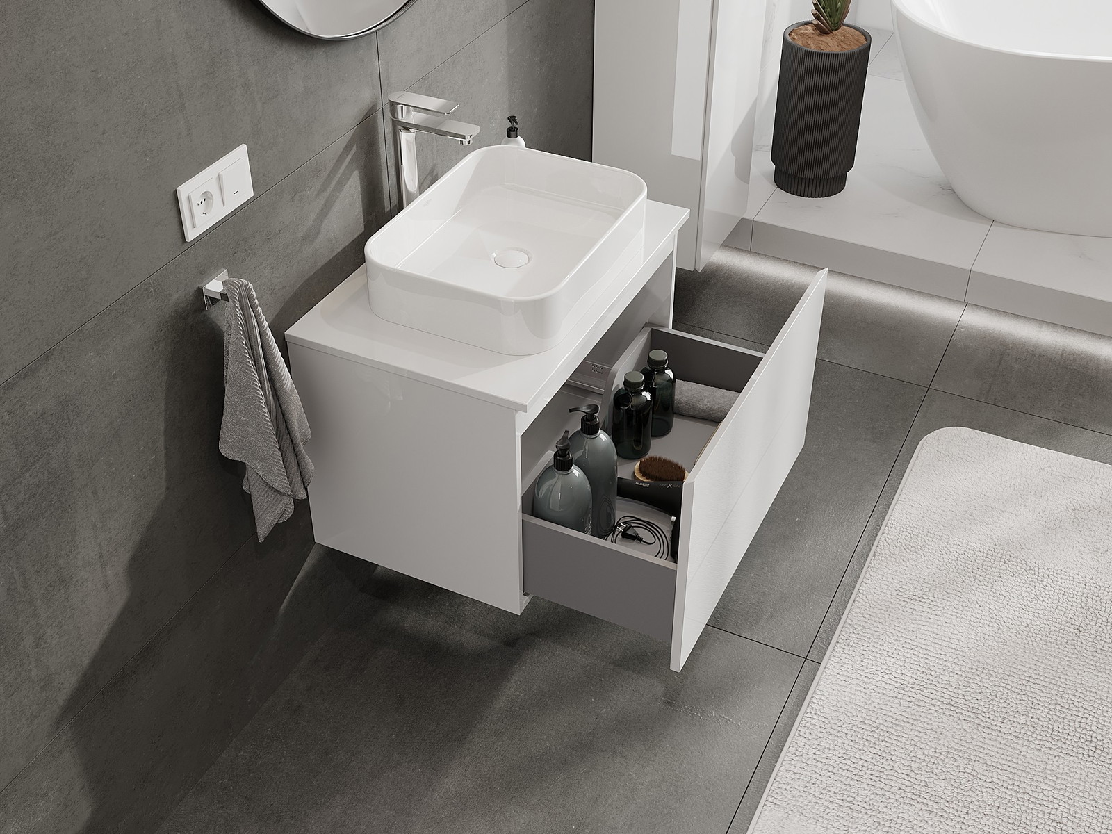 Výrez v zásuvke je navrhnutý tak, aby pojal sifón, ktorý je nevyhnutný v umývadlových inštaláciách. Vďaka tomu môže byť nábytok namontovaný plne funkčne, bez nutnosti vzdávať sa priestoru v zásuvke v prospech inštalácie.