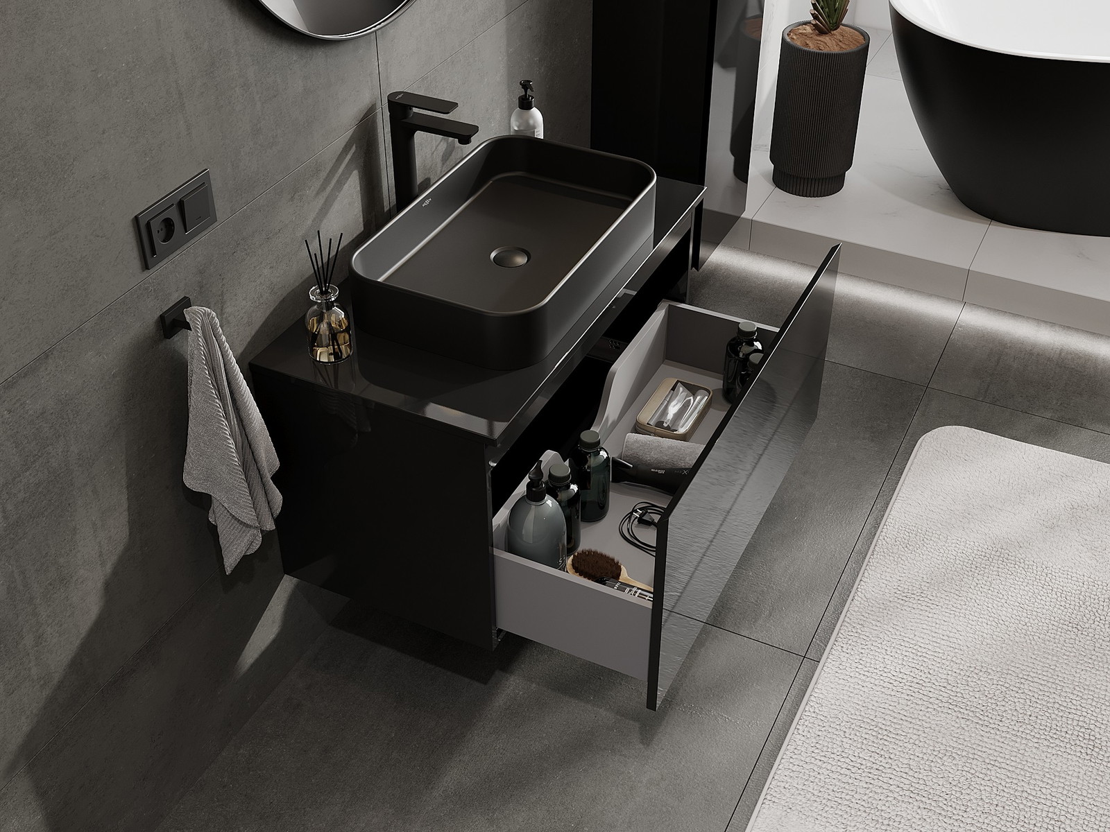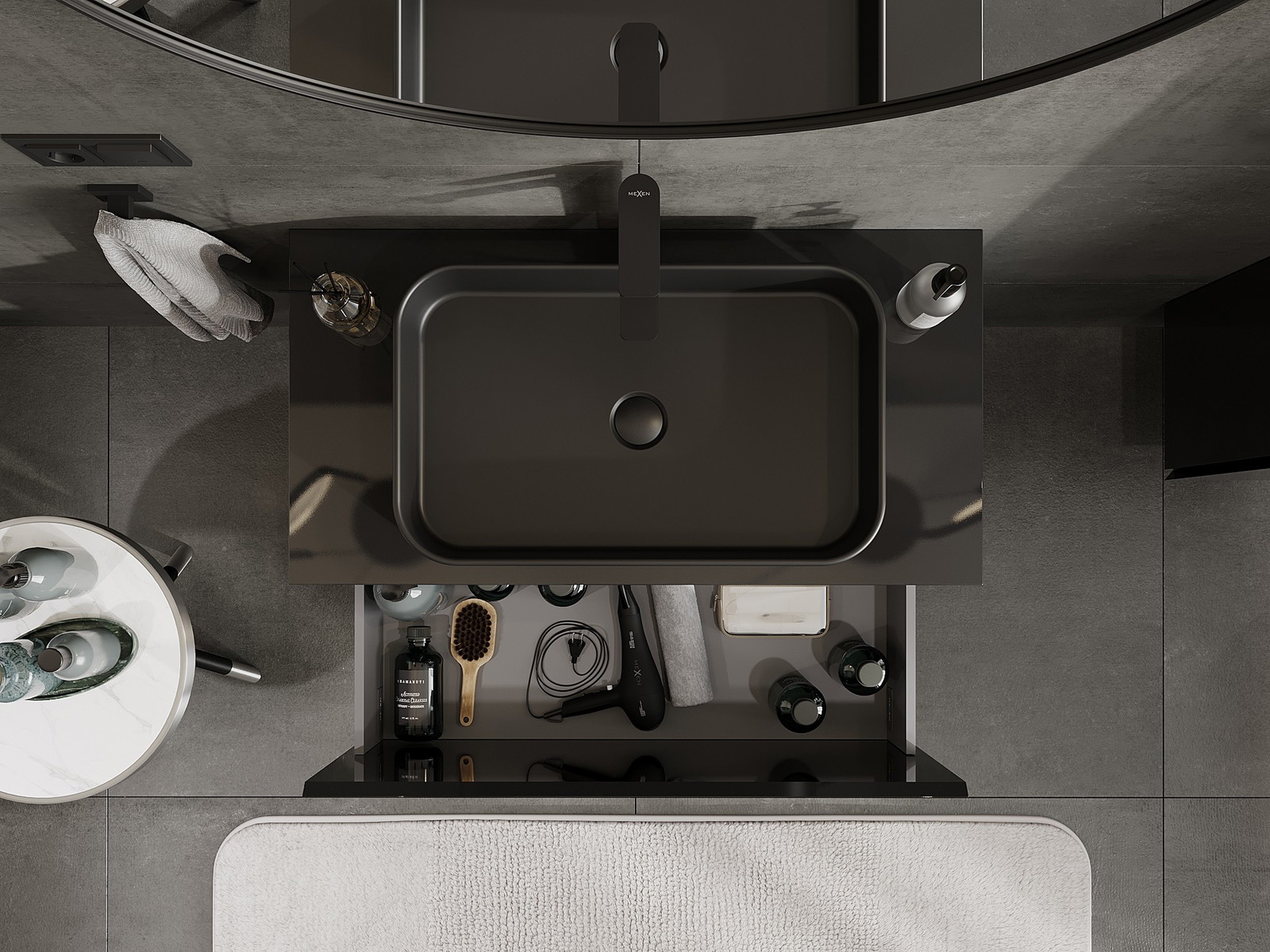 Výrez v zásuvke je navrhnutý tak, aby pojal sifón, ktorý je nevyhnutný v umývadlových inštaláciách. Vďaka tomu môže byť nábytok namontovaný plne funkčne, bez nutnosti vzdávať sa priestoru v zásuvke v prospech inštalácie.