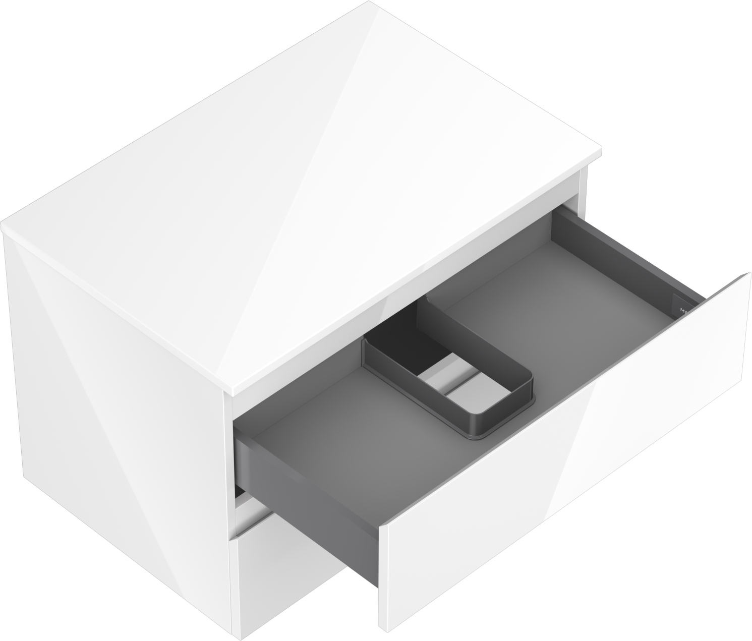 Výrez v zásuvke je navrhnutý tak, aby pojal sifón, ktorý je nevyhnutný v umývadlových inštaláciách. Vďaka tomu môže byť nábytok namontovaný plne funkčne, bez nutnosti vzdávať sa priestoru v zásuvke v prospech inštalácie.