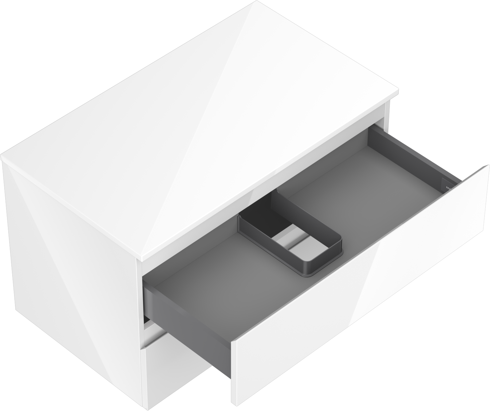 Výrez v zásuvke je navrhnutý tak, aby pojal sifón, ktorý je nevyhnutný v umývadlových inštaláciách. Vďaka tomu môže byť nábytok namontovaný plne funkčne, bez nutnosti vzdávať sa priestoru v zásuvke v prospech inštalácie.