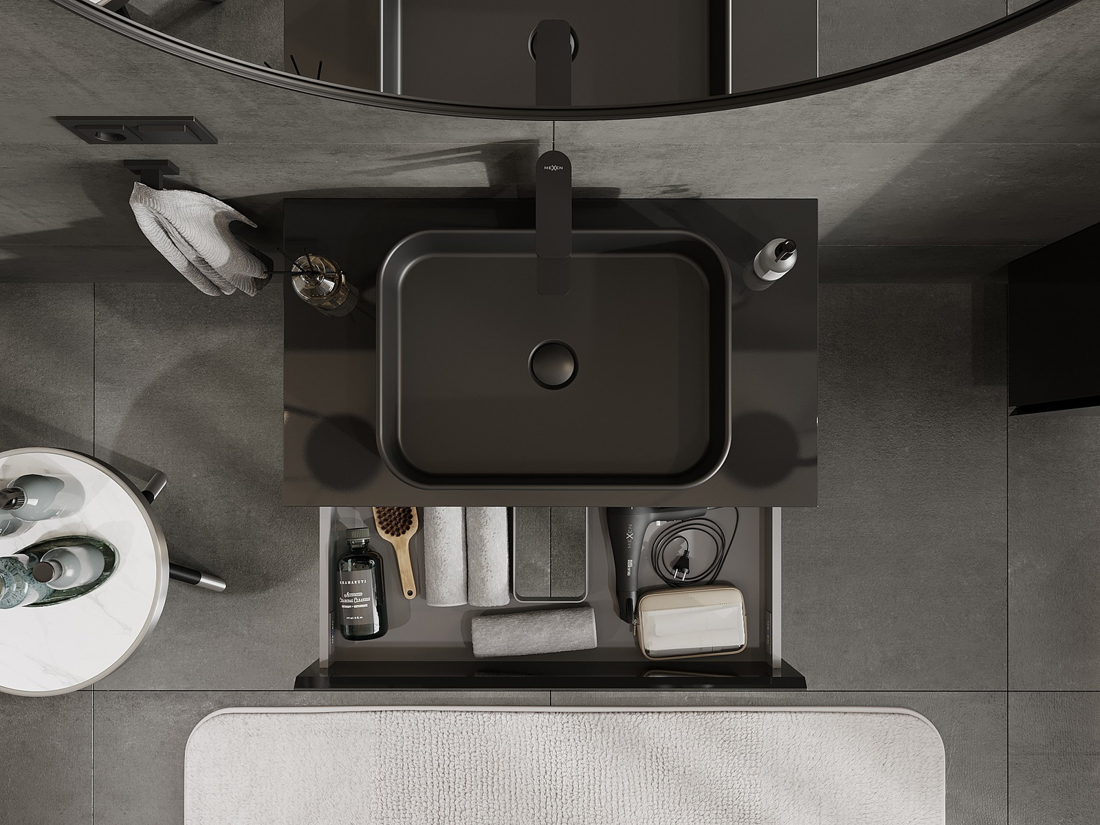 Výrez v zásuvke je navrhnutý tak, aby pojal sifón, ktorý je nevyhnutný v umývadlových inštaláciách. Vďaka tomu môže byť nábytok namontovaný plne funkčne, bez nutnosti vzdávať sa priestoru v zásuvke v prospech inštalácie.