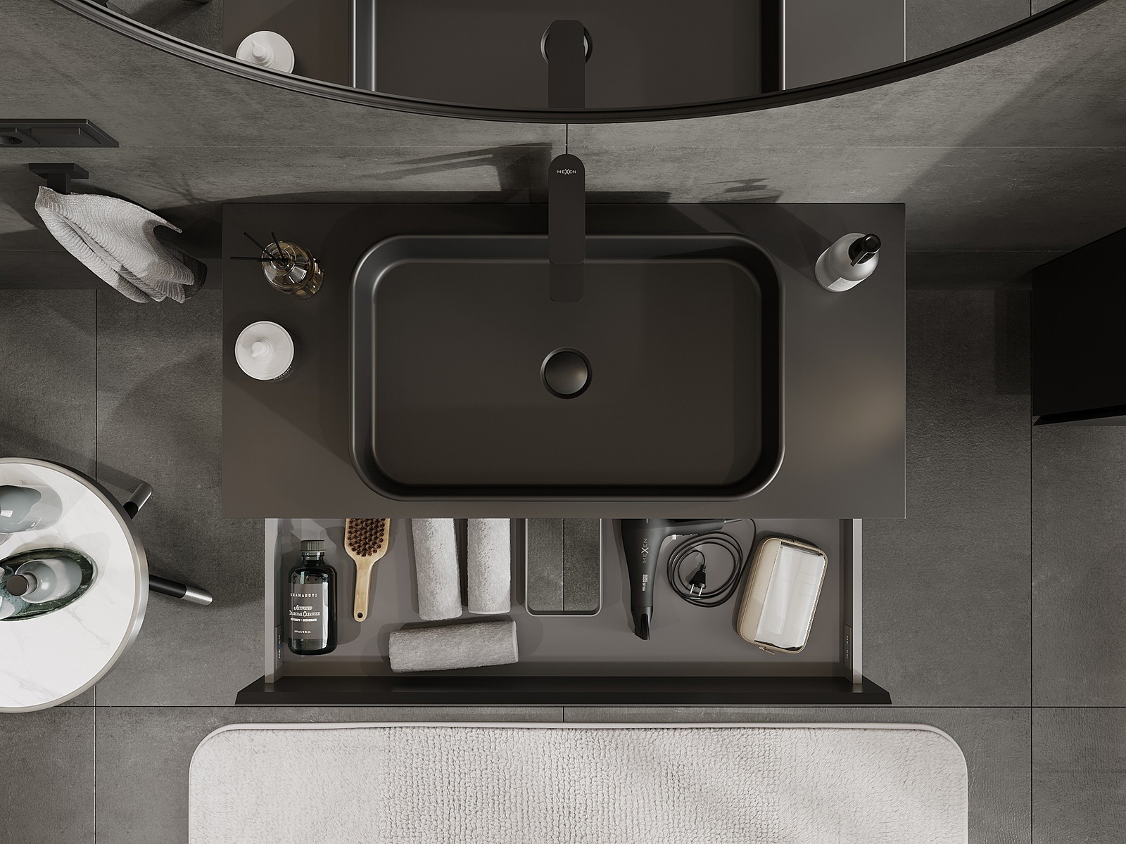 Výrez v zásuvke je navrhnutý tak, aby pojal sifón, ktorý je nevyhnutný v umývadlových inštaláciách. Vďaka tomu môže byť nábytok namontovaný plne funkčne, bez nutnosti vzdávať sa priestoru v zásuvke v prospech inštalácie.